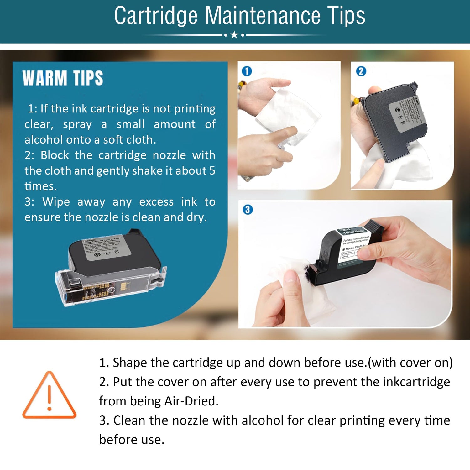 - [42ml Quick-Drying Ink Cartridge Included]: This handheld inkjet printer comes with a black original high-definition 42ml quick-drying ink cartridge that can effectively prevent from ink-leaking or nozzle-blocking problem in the maximum limit and provide excellent smooth & brightly-colored printing experience. Ink colors available: Black, white, Yellow, red, blue, green, invisible, UV.