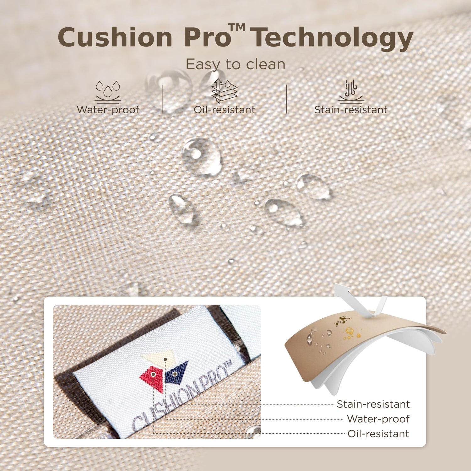 - 【CUSHION PRO TECHNOLOGY】Each seat cushion for comfy patio furniture sofa set is 4" thick and has special CUSHION PRO technology applied to make it easy to wipe down, water-proof, and oil-proof for all-season use. The 28D phenol-free sponge provides better support and resilience, and the full padded back cushion offers extra comfort and protection for your back (7.8" highest thick)