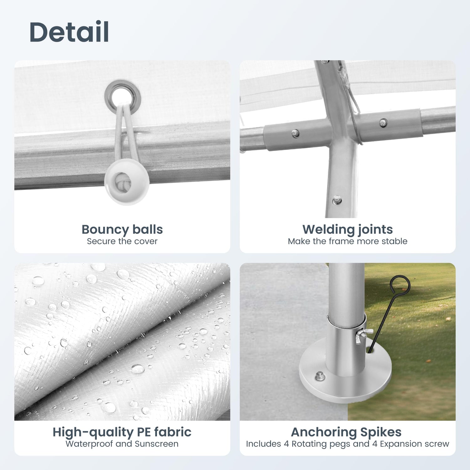 - 【Waterproof Canopy Cover】- This car port is made of heat-sealed, 180g polyethylene fabric, which is Anti-UV, Waterproof and can protect your car or boats against all four season elements, like sun, wind, rain, dust, hail and snow.