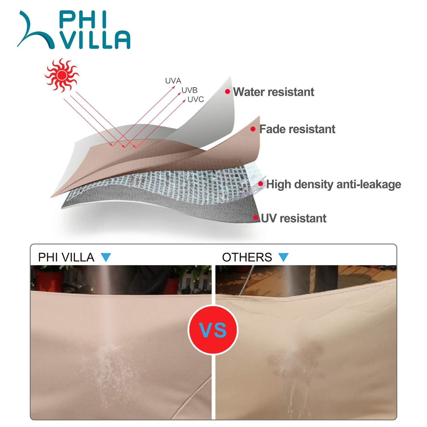 - 100% Polyester Canopy: PHI VILLA double sided outdoor umbrellas canopy are made of 100% polyester fabric that can be water-resistant, breathable, long lasting, fade resistant, UV protective and easy to clean