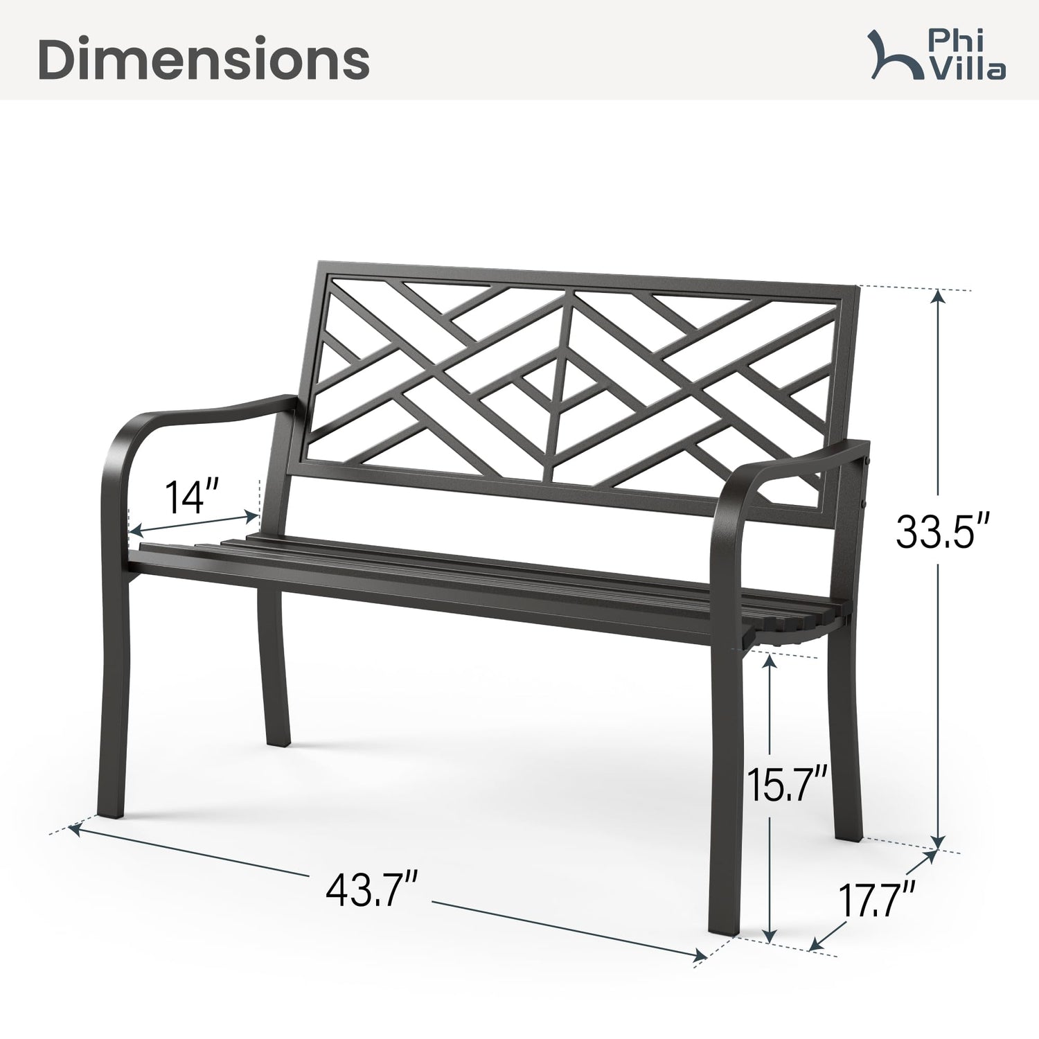 PHI VILLA 43 Inch Cast Iron Steel Frame Outdoor Garden Bench, Patio Furniture Chair Bench w/Line Pattern Design Backrest, Slatted Seat for Park, Yard, Porch - Black