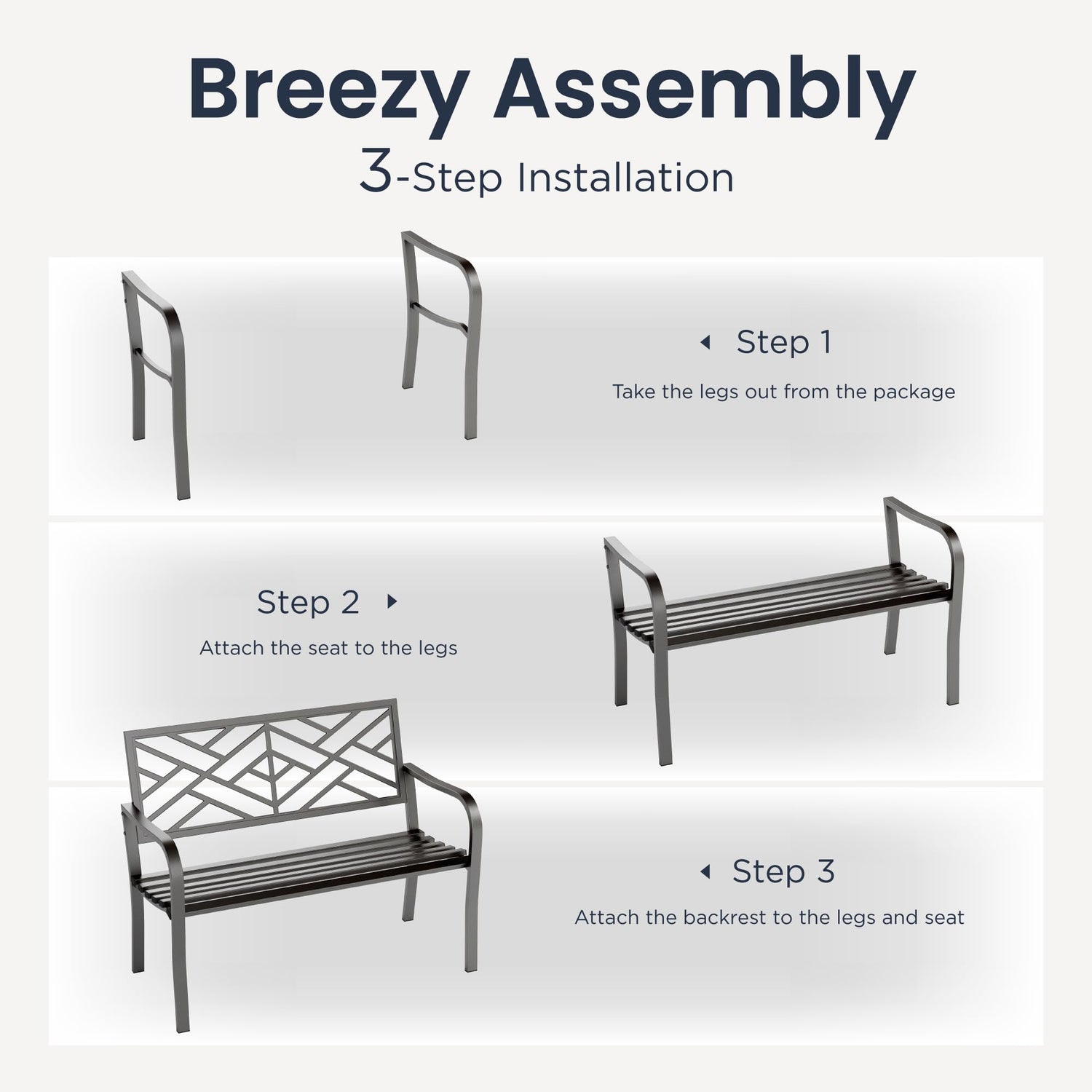 - 【Unique Minimal Pattern】 Elegant designed with the line pattern decoration on the backrest, the bench adds a sense of aesthetic and simplicity to your patio, garden,lawn,backyard and more.