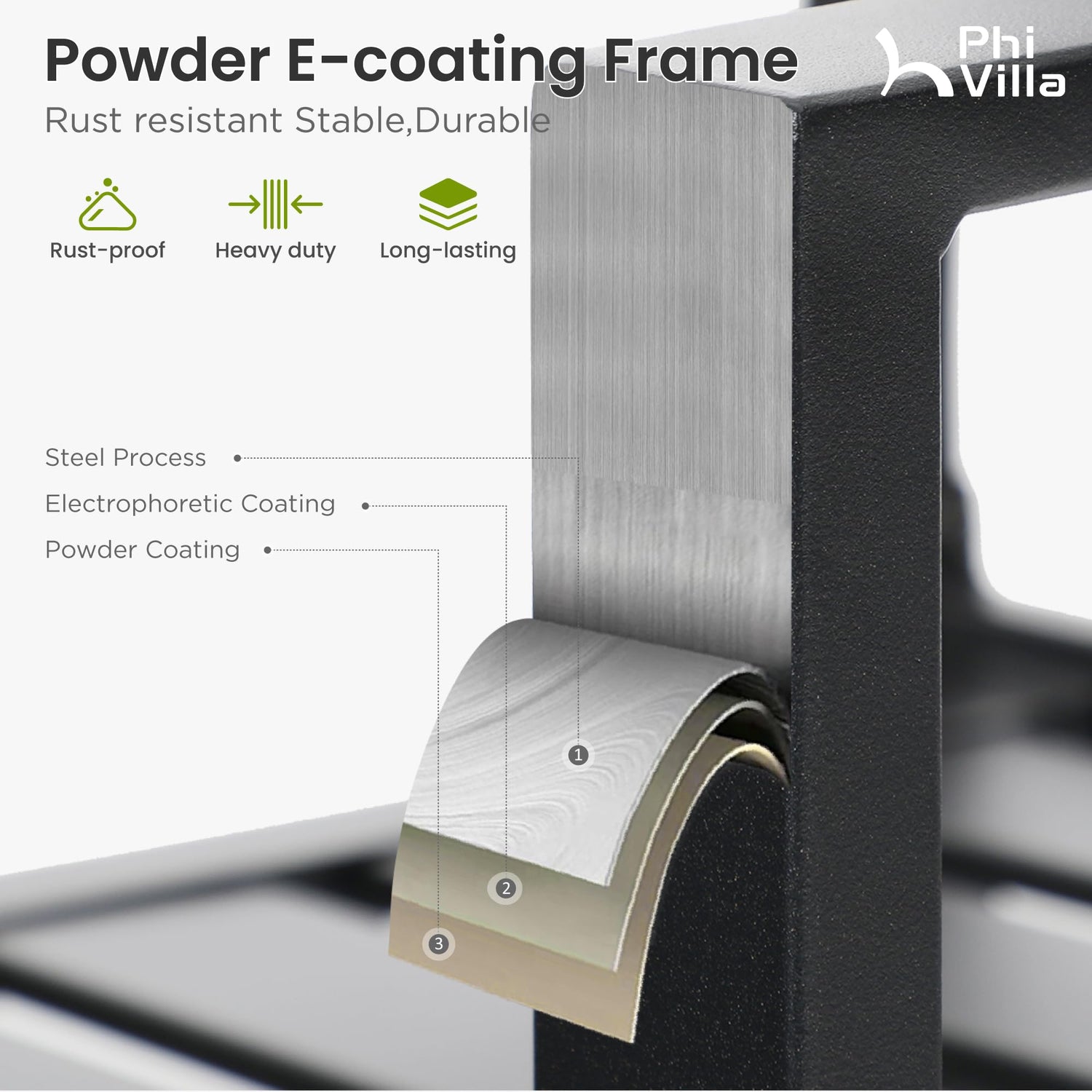 • Constructed with a sturdy wrought iron frame, this outdoor table set has undergone E-coating and powder-coating treatments, making it resistant to rust and more durable than many other patio dining sets on the market. Enjoy years of use on your patio, balcony, or outdoor area