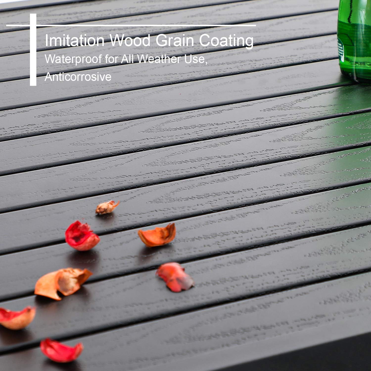 - Durable Bar Table - Patio bar table made of iron material, slatted metal tabletop with wood grain coating, elegant and weather resistant. Sturdy steel tube structure provides strong support for your tableware. Adjustable foot mats suit for uneven ground use, and protect the floor from scratching. Overall dimension: 55"L*26.8”W*37”H.