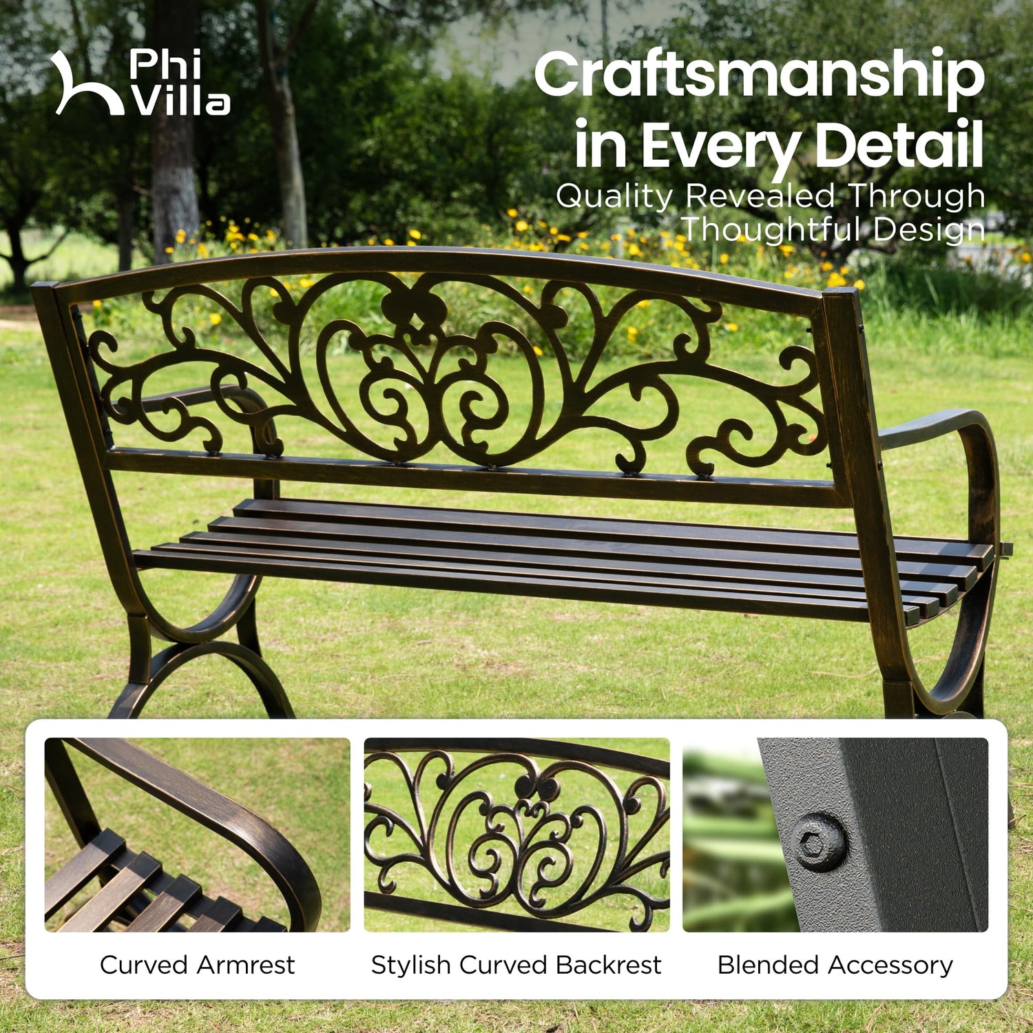 PHI VILLA 50" Garden Bench Outdoor Bench Patio Bench for Outdoors Metal Porch Steel Frame Furniture for Yard