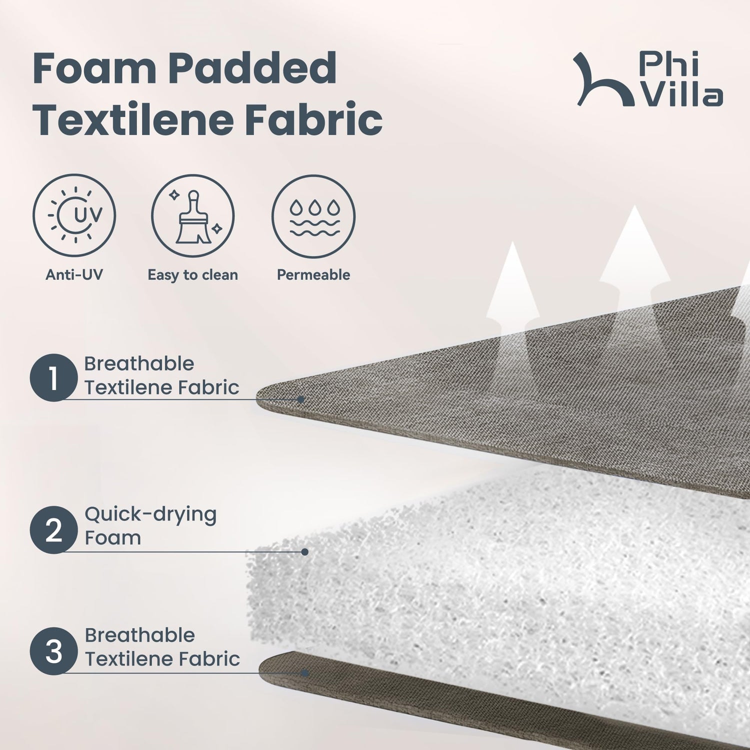 - Padded Textilene Chair Seat and Back: Chair seat and back use premium textilene padded with quick-drying foam, comfortable, UV-resistant and long-lasting. Suitable for all kinds of weather, high quality fabrics provide you with long service