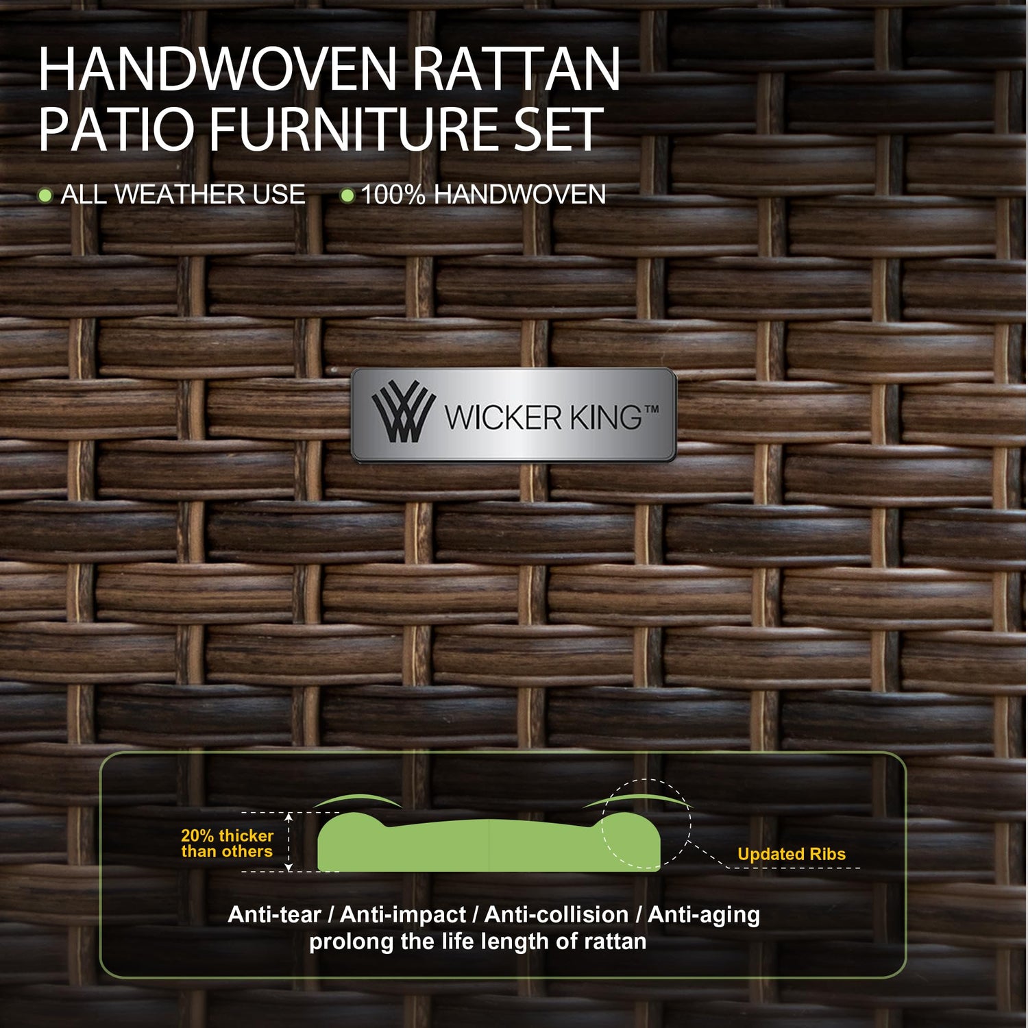 - 【ALL WEATHER USE】Constructed with a sturdy steel frame and premium PE rattan. Special natural wood-like handrails and sofa legs providing excellent support,this outdoor sectional set is designed for all-weather use and guaranteed to last for years. Hand-woven dark brown rattan ensures there's no peculiar smell in the finished product, and the service life is three times that of ordinary machine production