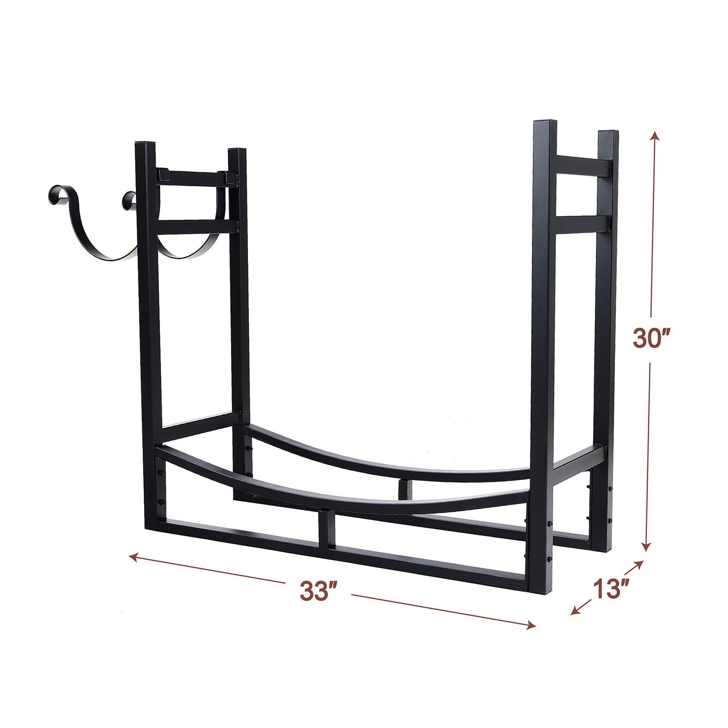• 【Sufficient Storage Space】Wood storage dimensions: 33"L x 13"W x 30"H,tubular steel(1.2mm thick&1.2"diameter). This log rack holds 400 lb capacity, enough for long cold winters. I-Beam reinforcements design keeps the log rack more solid and sturdy, holds and stores approximately 3/4 face-cord of firewood