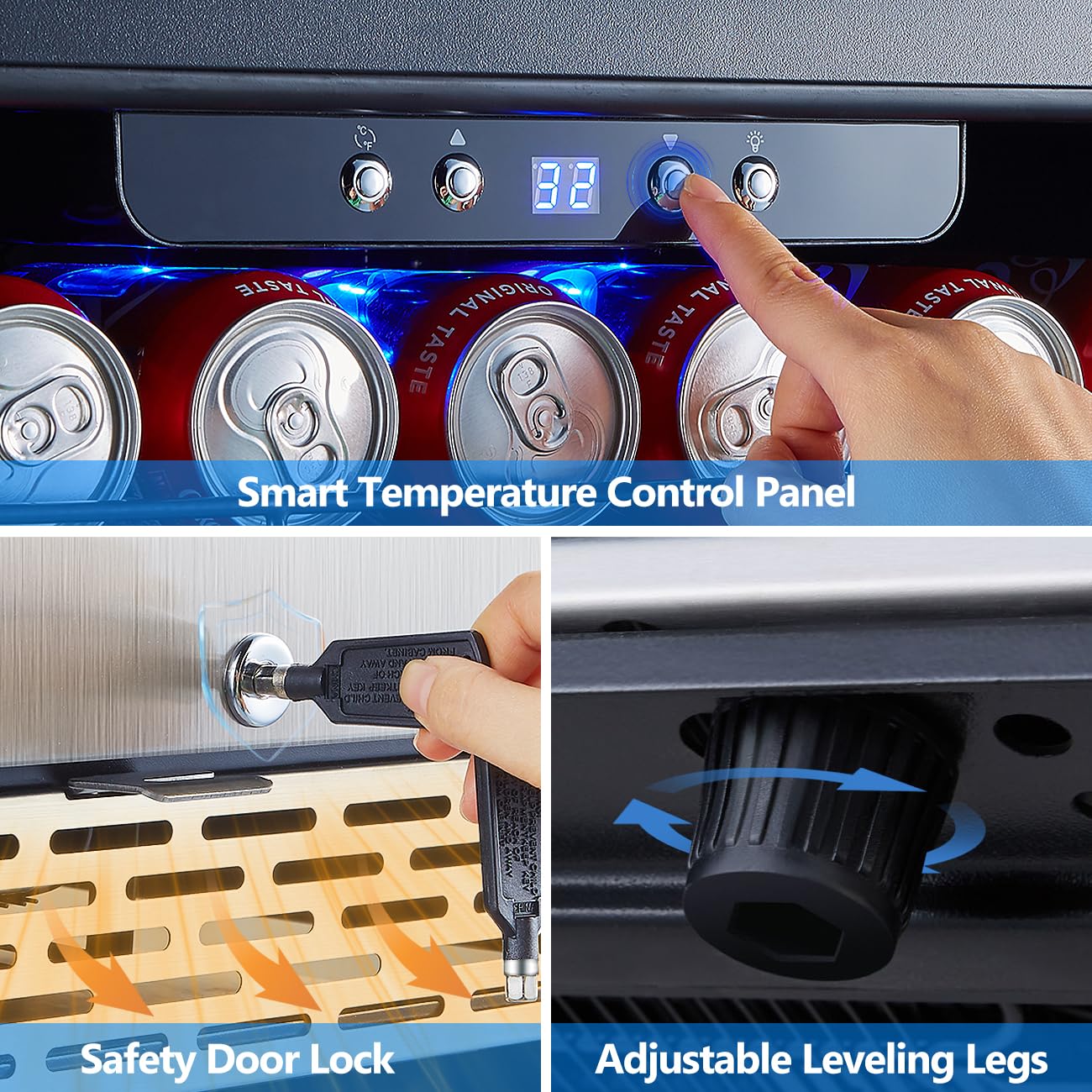 Phiestina 24 inch Indoor/Outdoor Beverage Refrigerator 175 Cans Built-in/Freestanding Beverage Fridge Cooler Lockable Stainless Steel Door Auto Defrost Quiet For Home/Commercial,6 Removable Shelves
