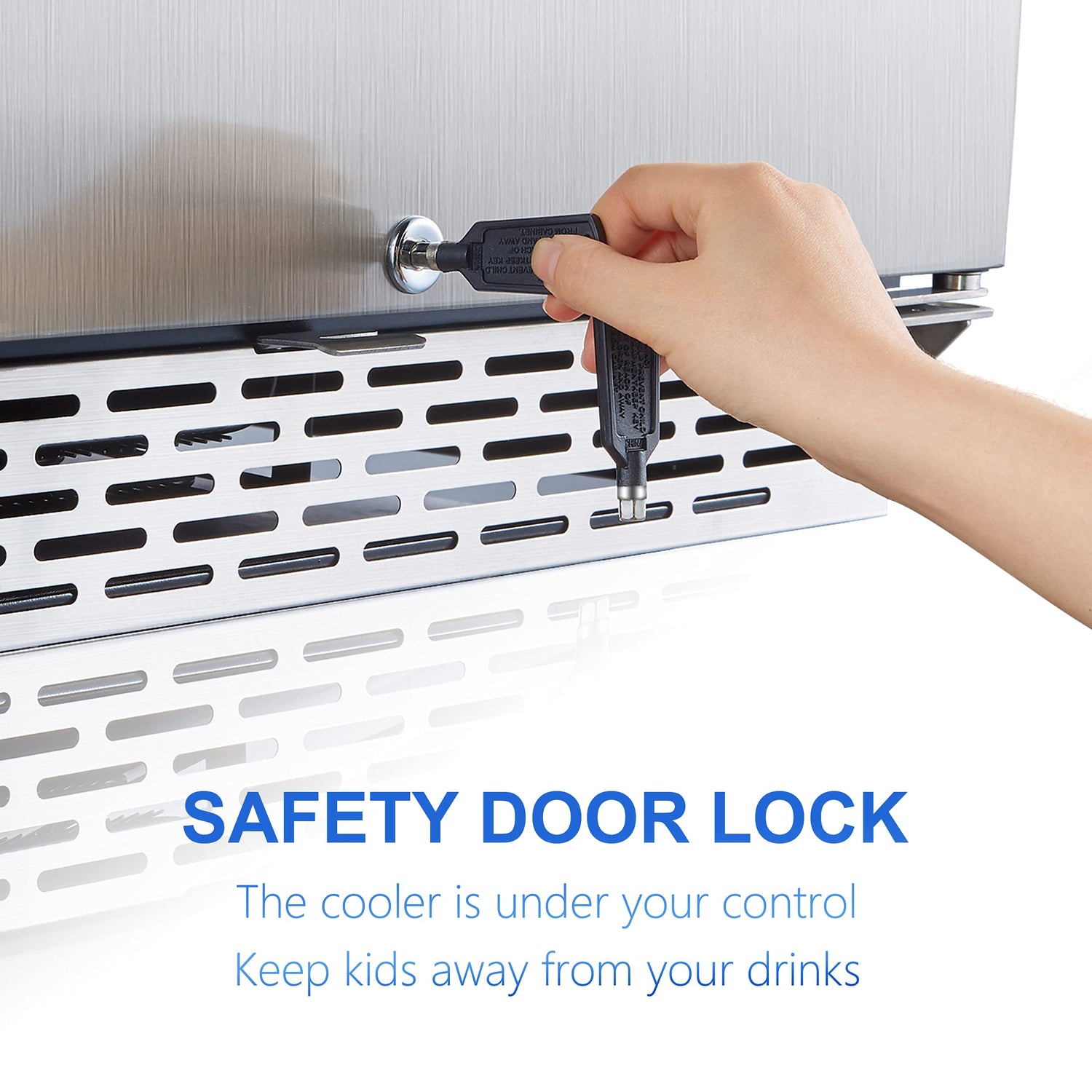 - An elegant blue LED light is inside. If power outage, the refrigerator will automatically reset to the last set temperature after restarting without manually reset it. This built-in or freestanding beverage fridge cools your drinks at the right temp thanks to advanced temperature control technology. Finally, Fahrenheit and Celsius can be switch freely :range 32-41℉/ 0-5℃ (Cooler than other kinds of beverage fridge).