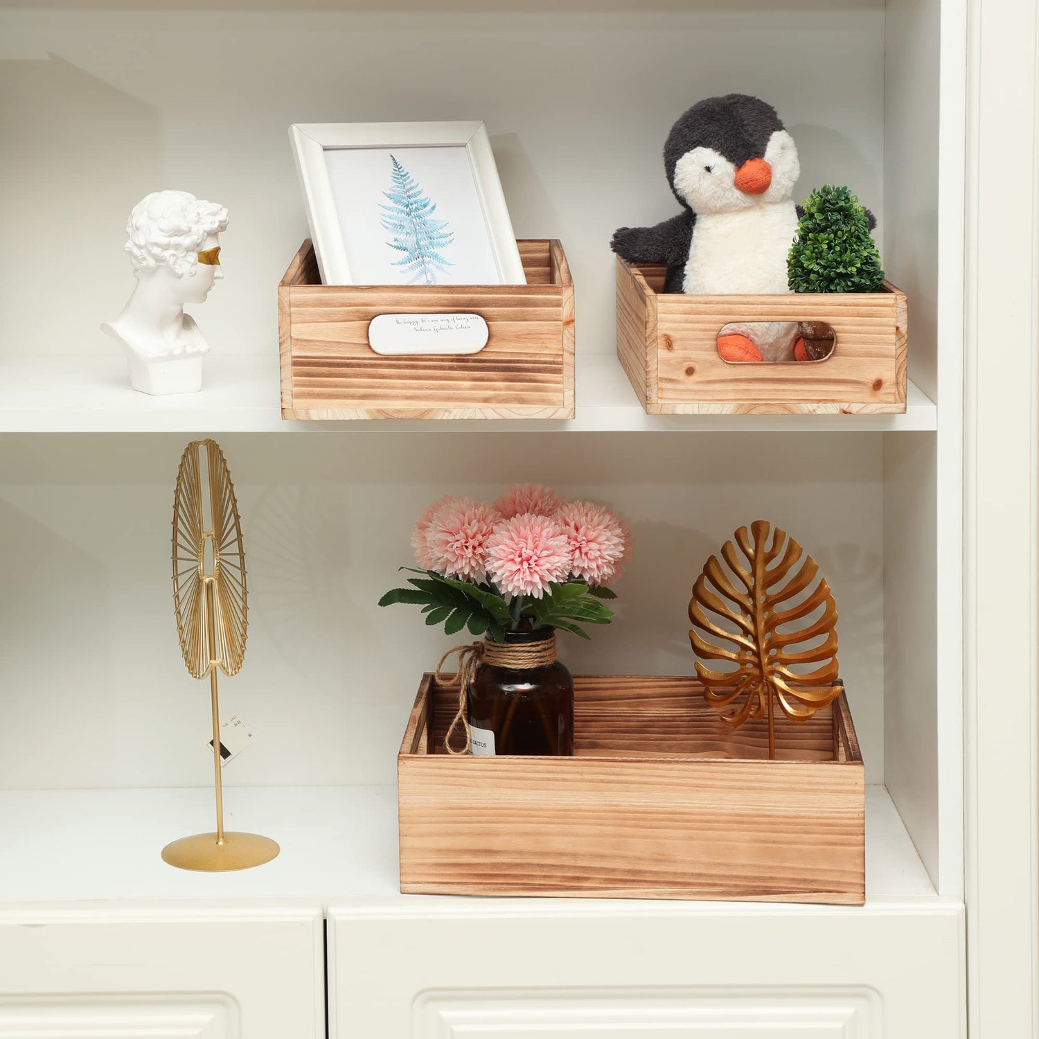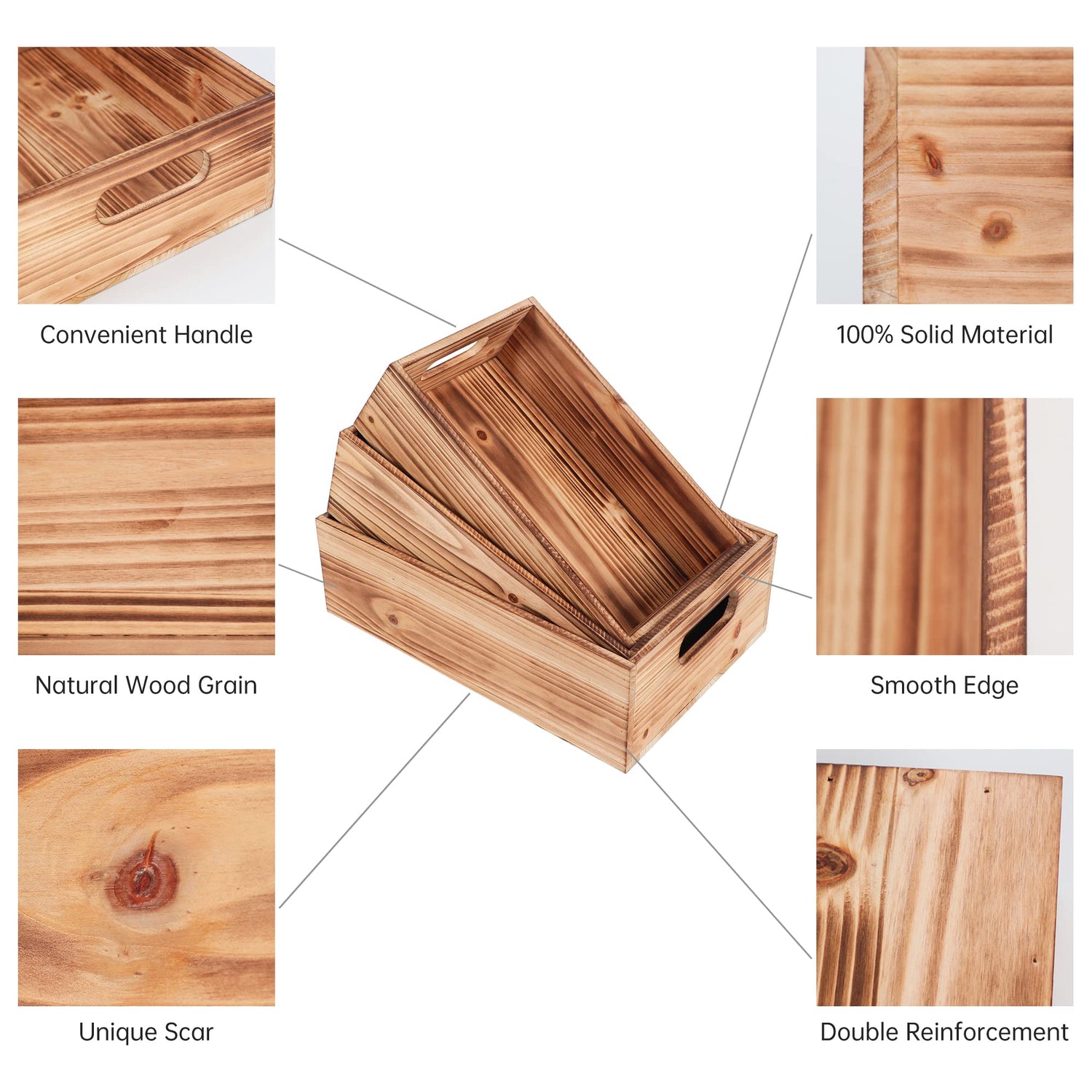 - Different Sizes:Set of 3 wooden crate box are stackable and nest into one another for easy storage.The varied sizes offer multiple choices for holding different types of items.Meeting your different storage needs