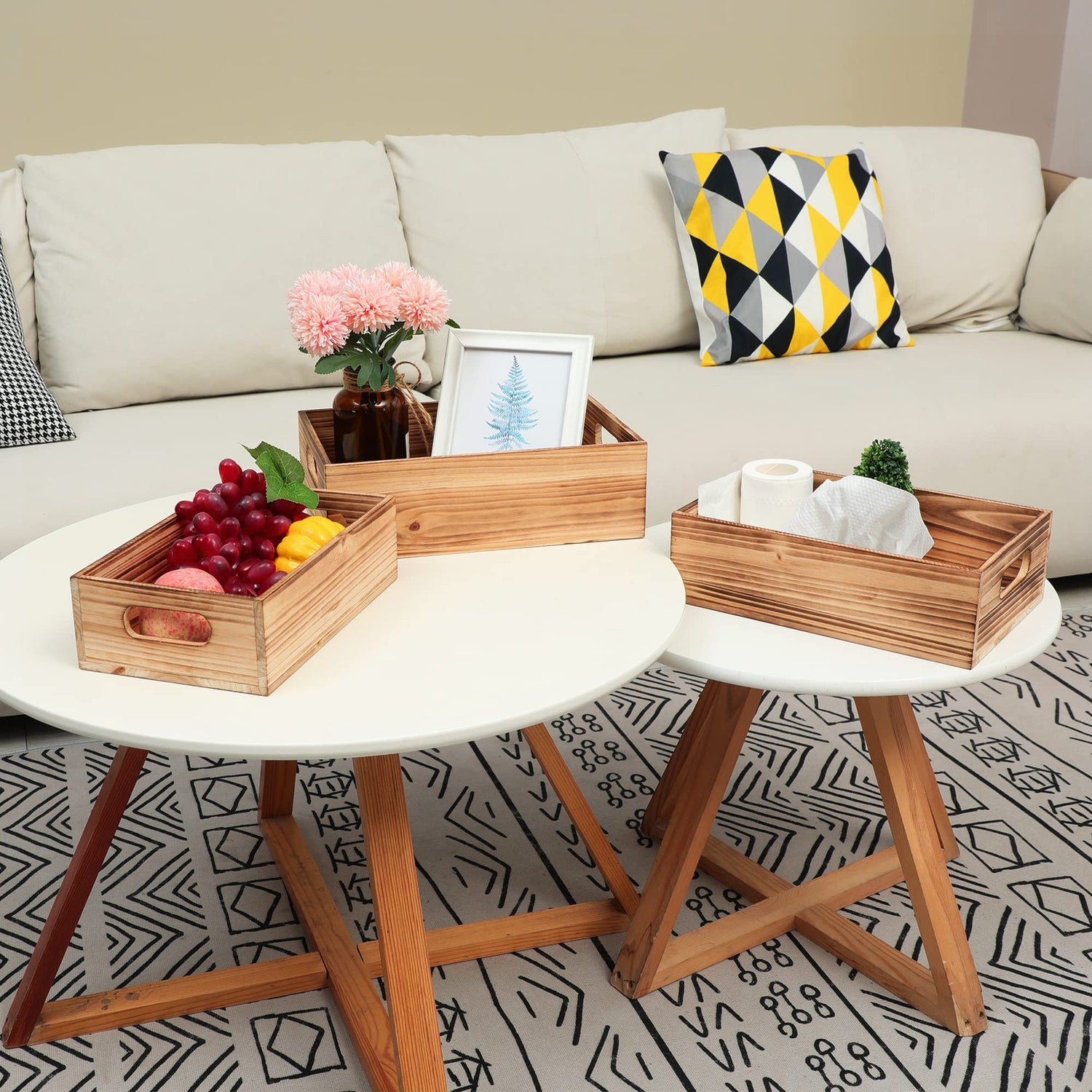 - Unique Design:The wooden crates decorative has natural wood grain and unique scars on surface,the vintage look brings rustic farmhouse feel to your home.And two cutout handles on each box that very practical and makes them easy to carry around
