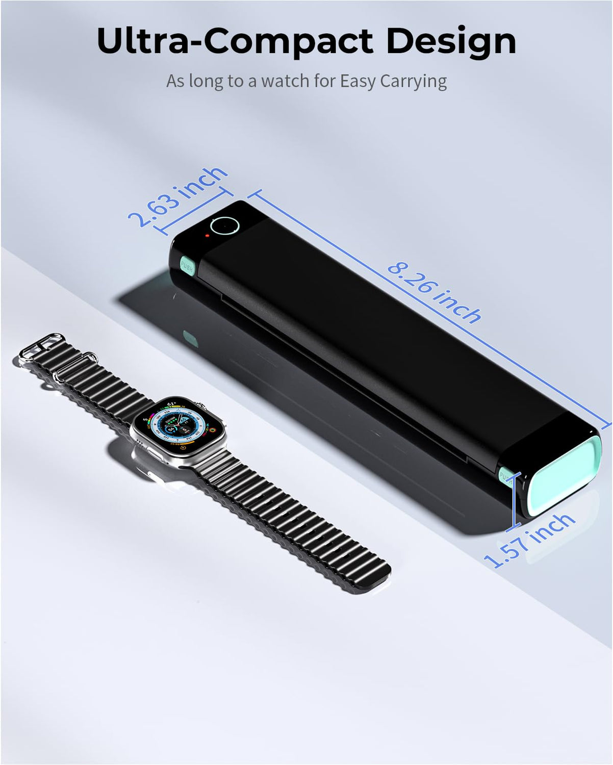 - Compact Printer [Compact and Space-saving Design]: Portable thermal printer weighing just 1.5lb and only 1.5in thick, able to fit in your bag or briefcase for easy transporting and surprisingly light for long commute times. Our travel printer great concept for On-site printing from anywhere needed, like if traveling for photos, work, business, office, home, car, or university for example. Also a gift for everyone