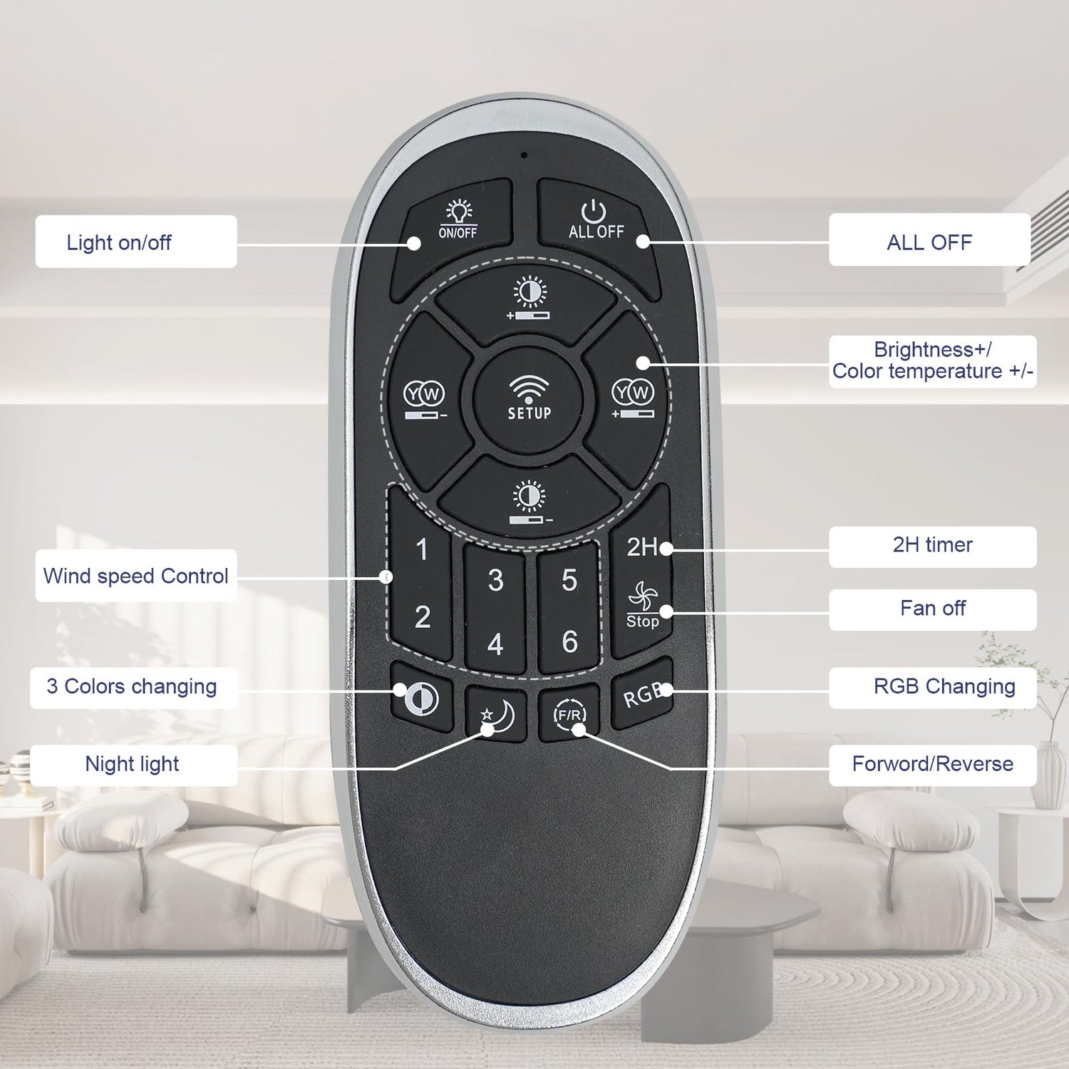- [Reversible 6-speed DC motor] : Modern ceiling fan supports 6 gear speeds,with its reverse function,you can change the direction of the ceiling fan seasonally to obtain a cooling effect in summer and warm air distribution in winter to maintain comfort throughout the year