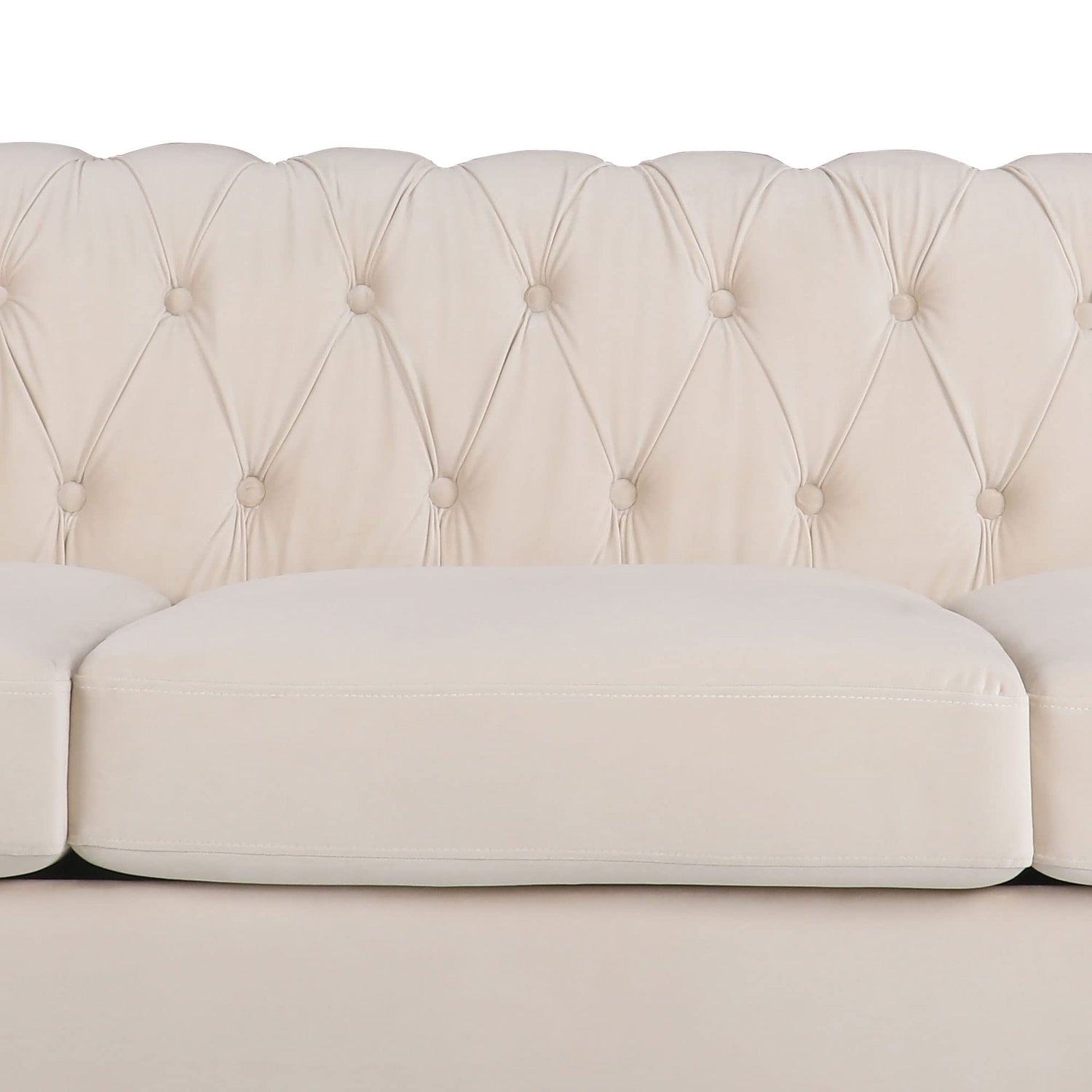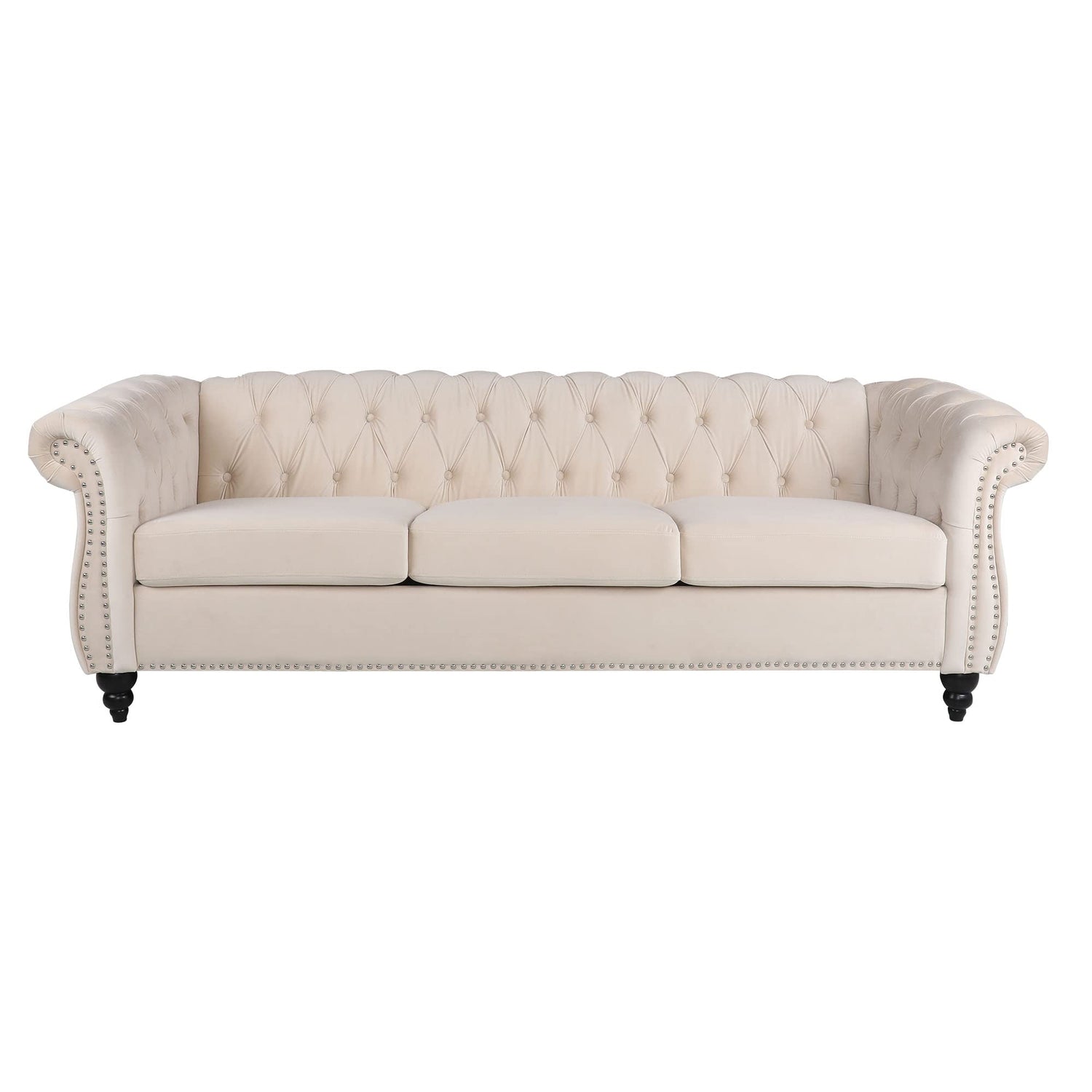 PHOYAL Large Velvet Sofa Three-seat Sofa Classic Tufted Chesterfield Settee Sofa Modern 3 Seater Couch Furniture Tufted Back for Living Room (Beige)