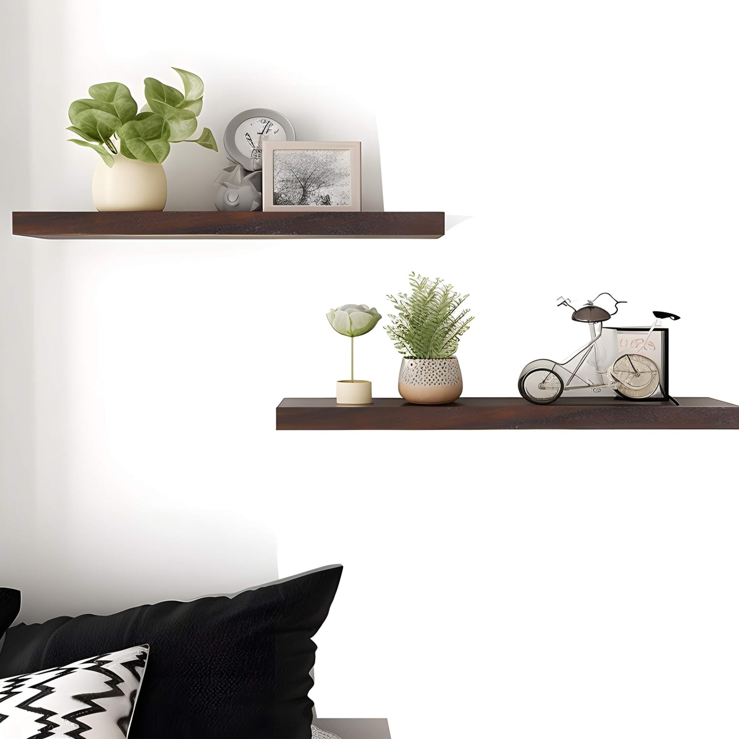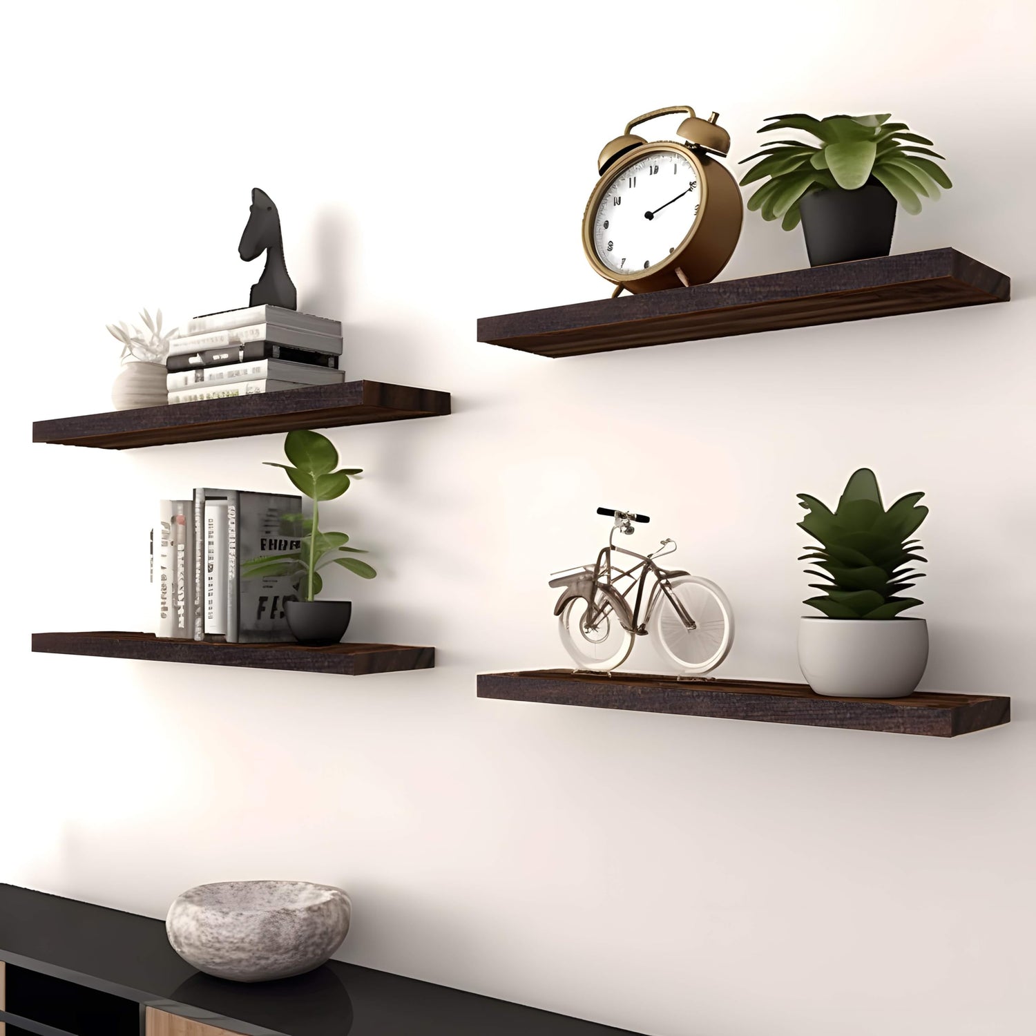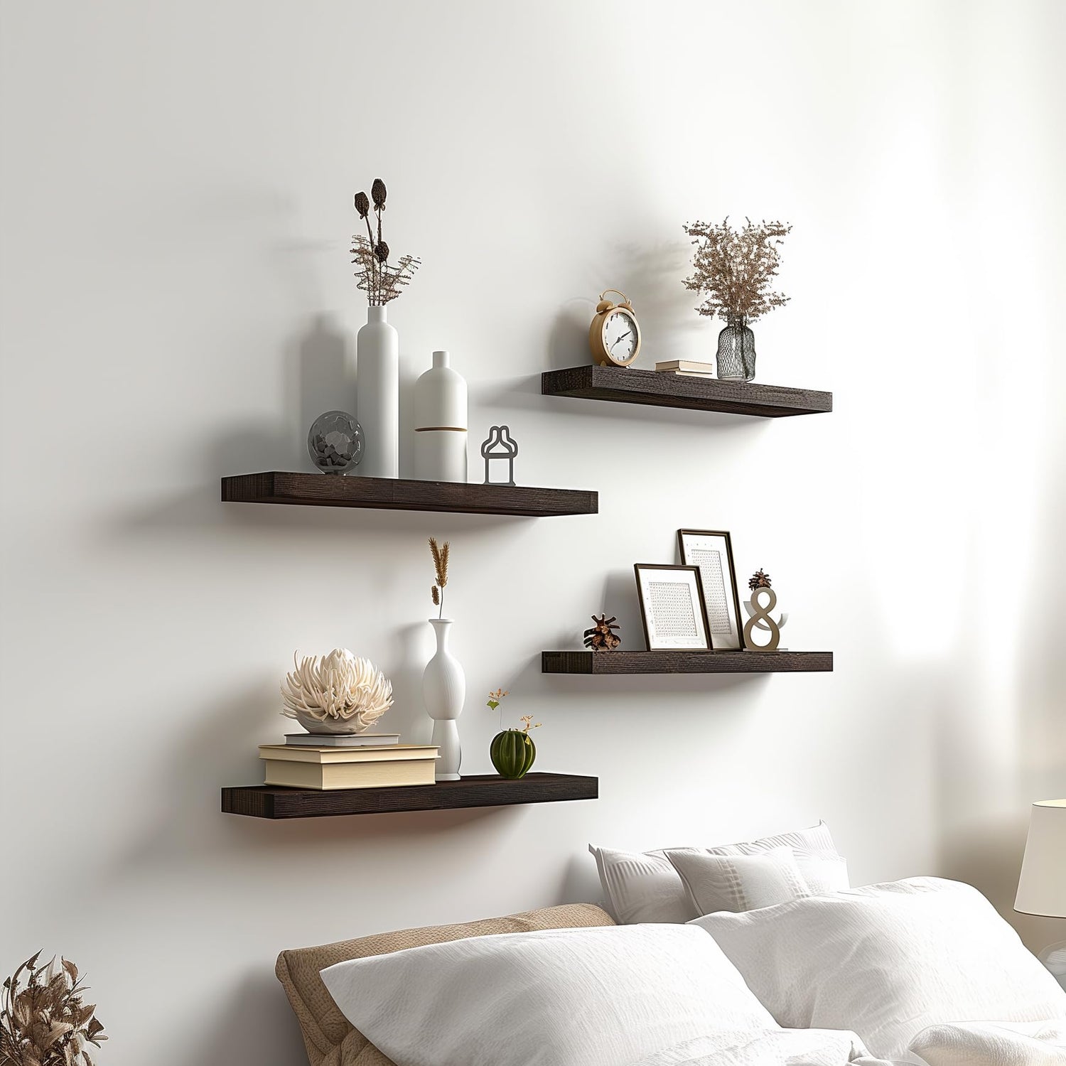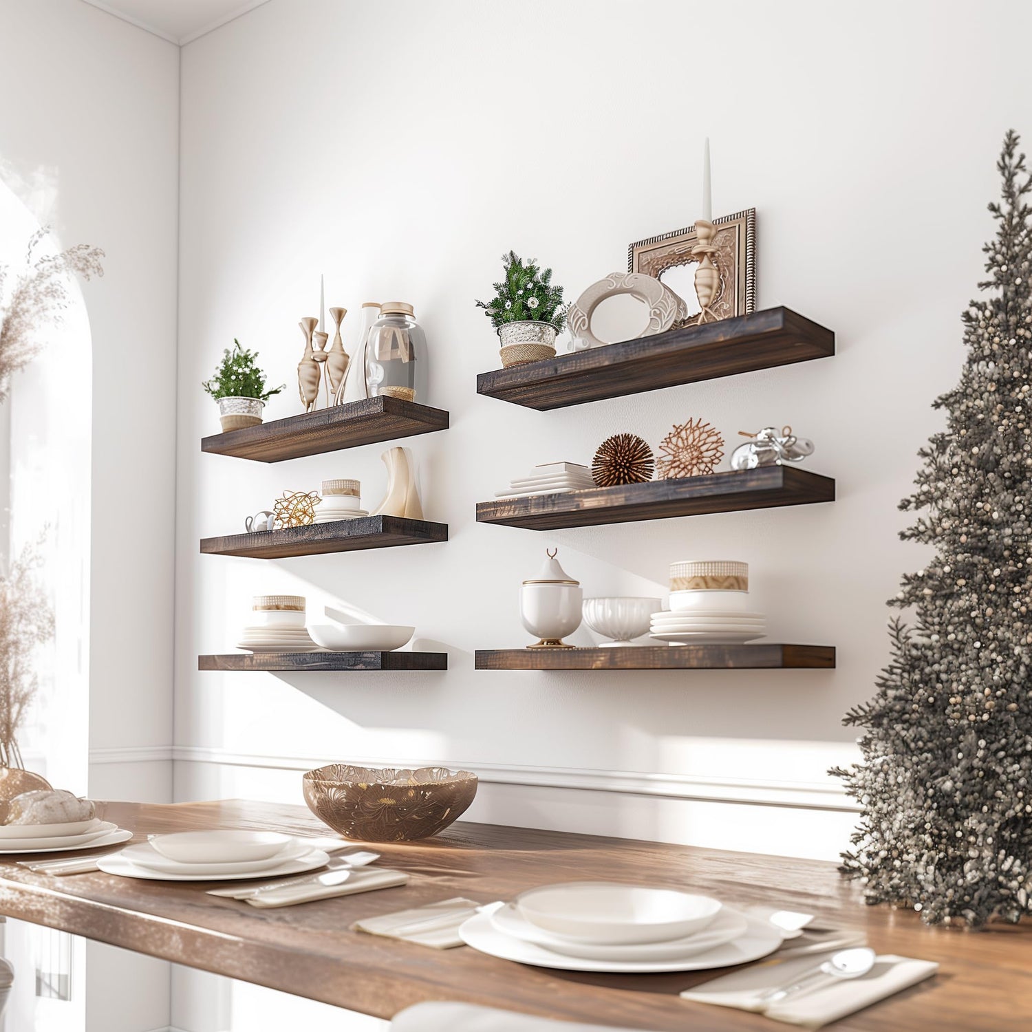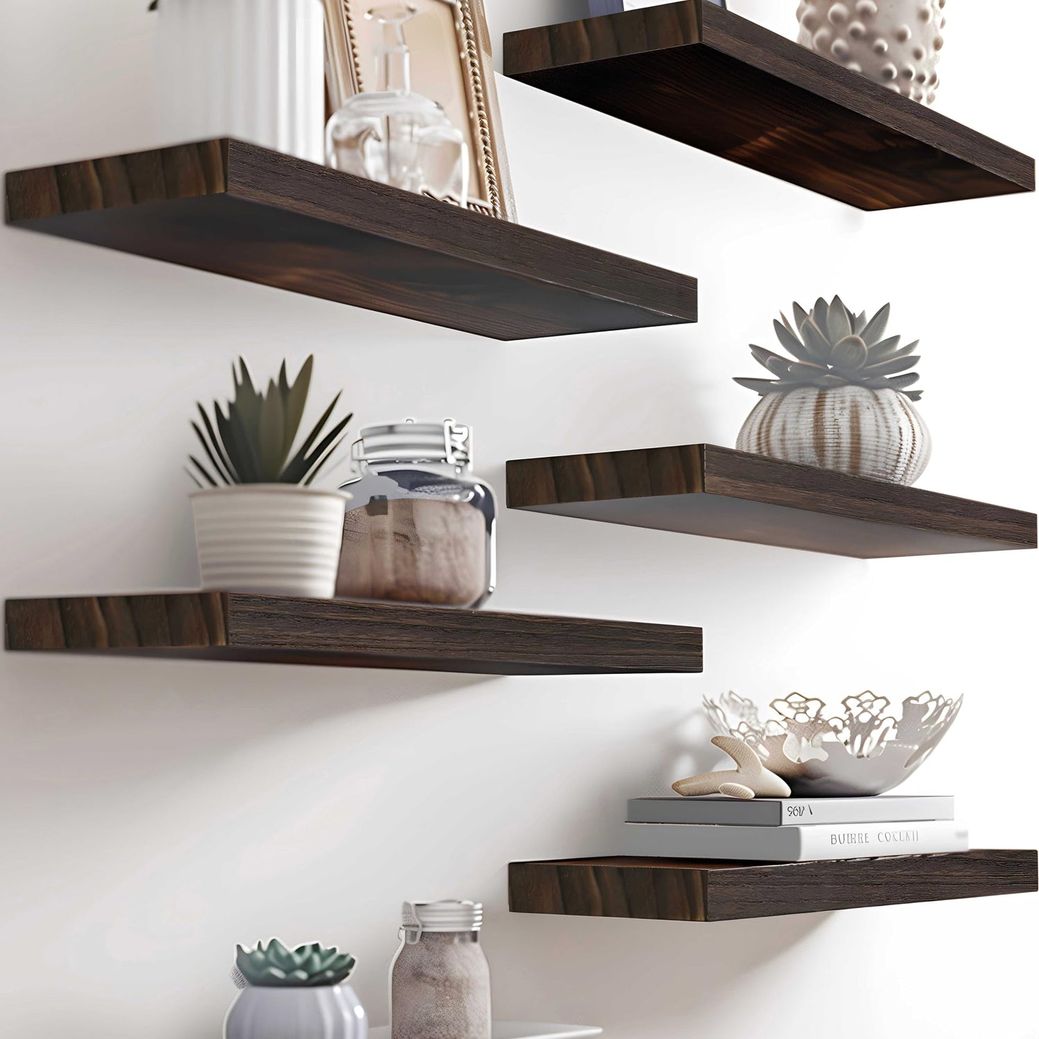 - Real Wood Floating Shelves: Crafted from solid wood for a durable and sturdy design. PHPH wood floating shelves with natural wood grain give a rustic feel to any space.