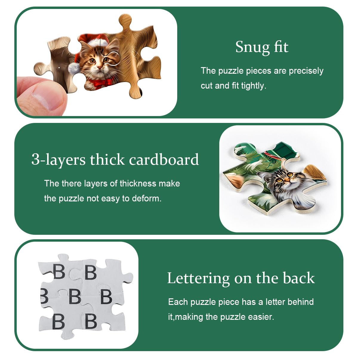 - Beautifully made: This christmas cat puzzles 1000 pieces is made of three-layer cardboard, bright colors, ensuring that you enjoy best visual experience. Each piece of the puzzles for adults 1000 pieces dogs has been carefully polished and fits tightly