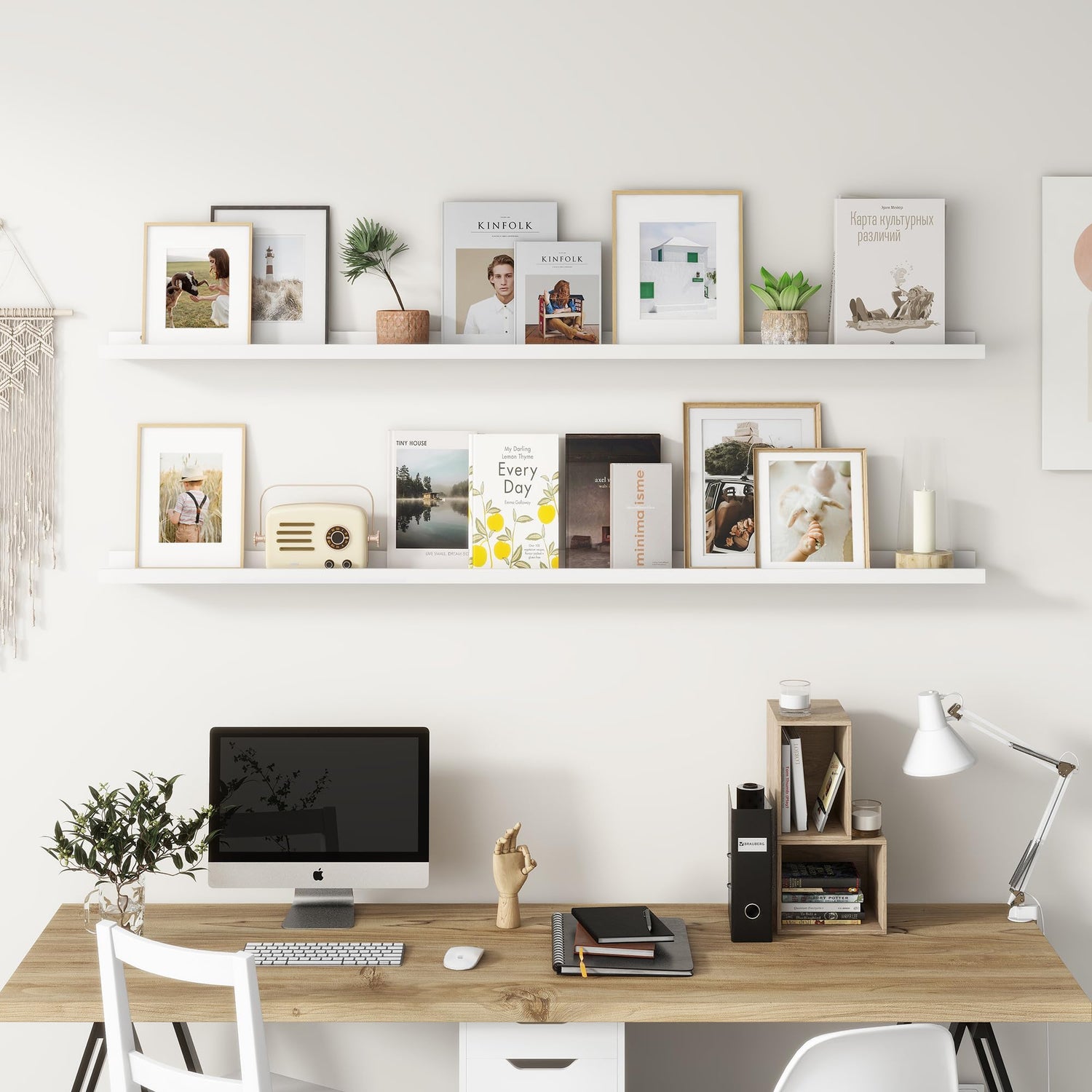 FLYJOE 72'' Solid Pine Wood Floating Picture Ledge Shelf Set of 2 in White for Kids' Room and Home Decor