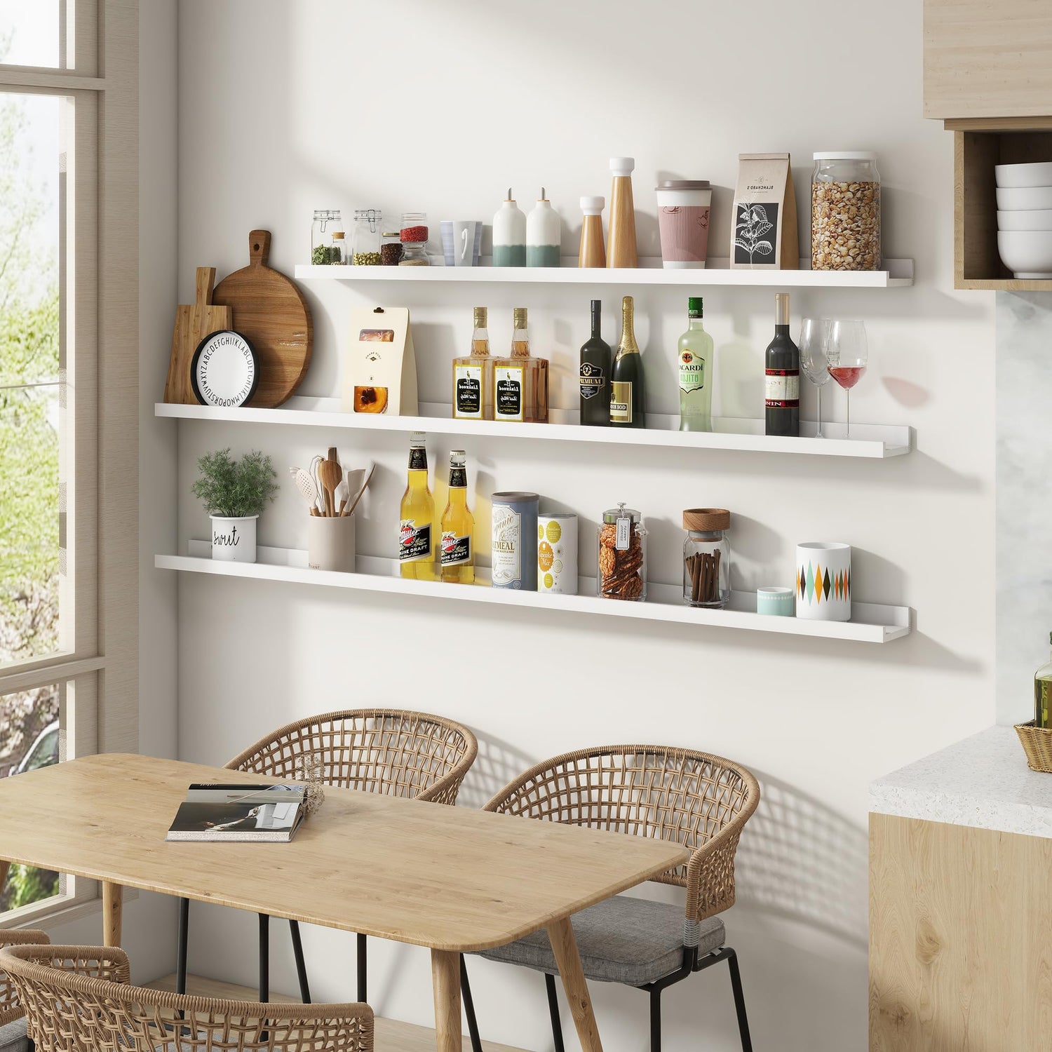 These picture ledge shelves, measuring 72×5×2 inches, are not only practical but also stylish. The thoughtful design features a ledge at the front to secure your treasured items while a shallow groove ensures that nothing slides off. With a depth of 5 inches and a 1.25-inch lip, these shelves provide ample space for displaying photos, books, toys, and knickknacks.