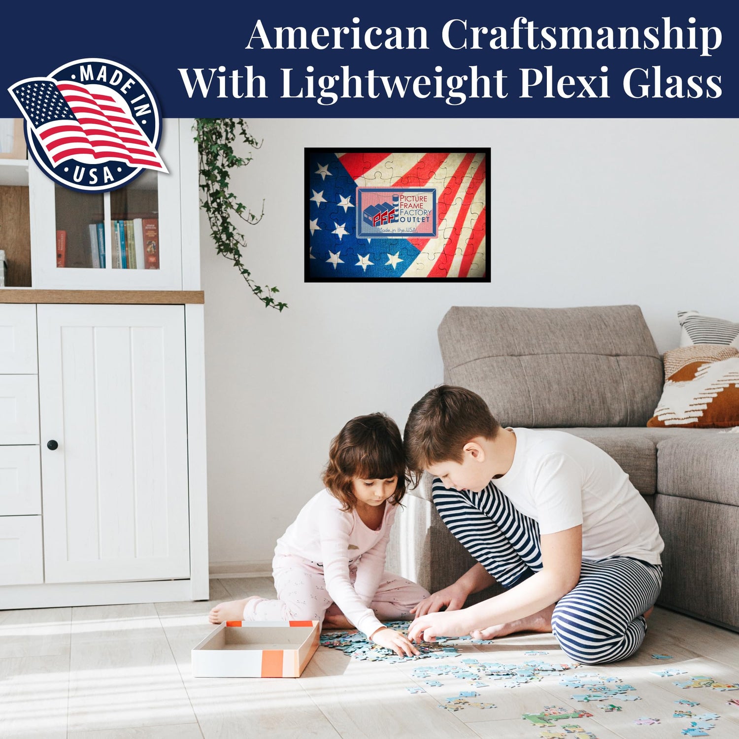 PictureFrameFactoryOutlet 20x27 Puzzle Frame - Showcase Your Artwork and Puzzles with Elegance and Security - 1.25" Black MDF Frame, Hanging Hardware, and Protective Plexi Glass Included