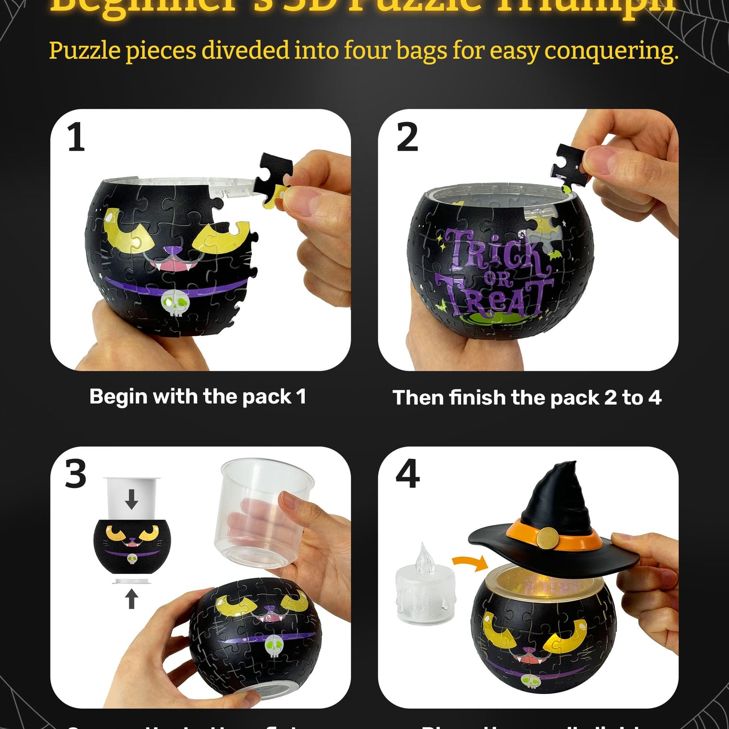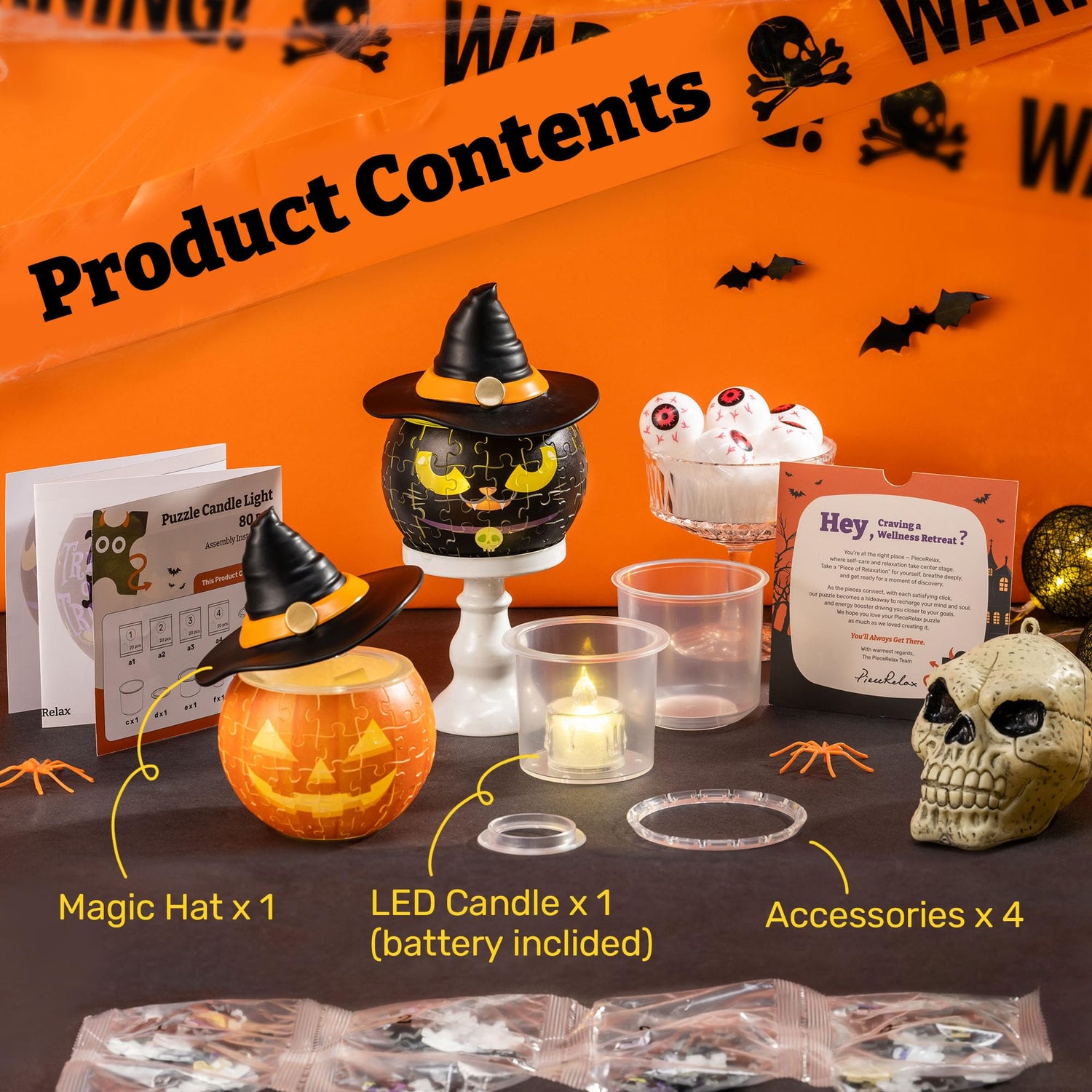 - BEGINNER’S 3D PUZZLE TRIUMPH - Easy to assemble, the Halloween Puzzle Candle Light comes with pieces divided into four bags. Ideal for puzzle enthusiasts and beginners, our electric candles offer a safe, beautiful alternative to traditional flames, making it a practical Halloween decor piece.