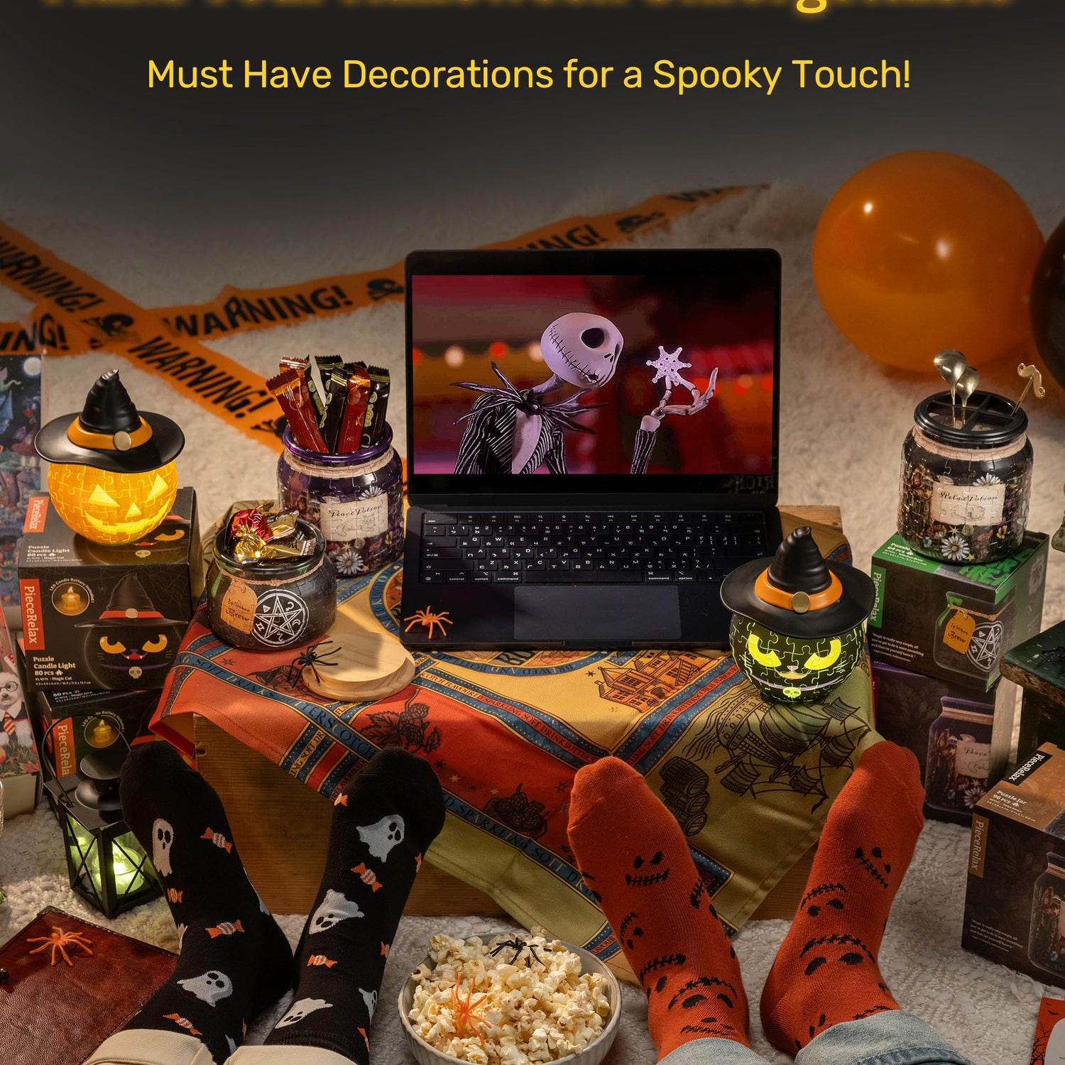 - MAKE YOUR HALLOWEEN UNFORGETTABLE - Transform your home with our Halloween Puzzle Candle Light! This must-have decoration combines spooky flickering LED lights with intricate puzzle pieces. Perfect for indoor and outdoor decor, impress your guests with large, battery-powered jack-o-lantern lights and make your Halloween unforgettable.