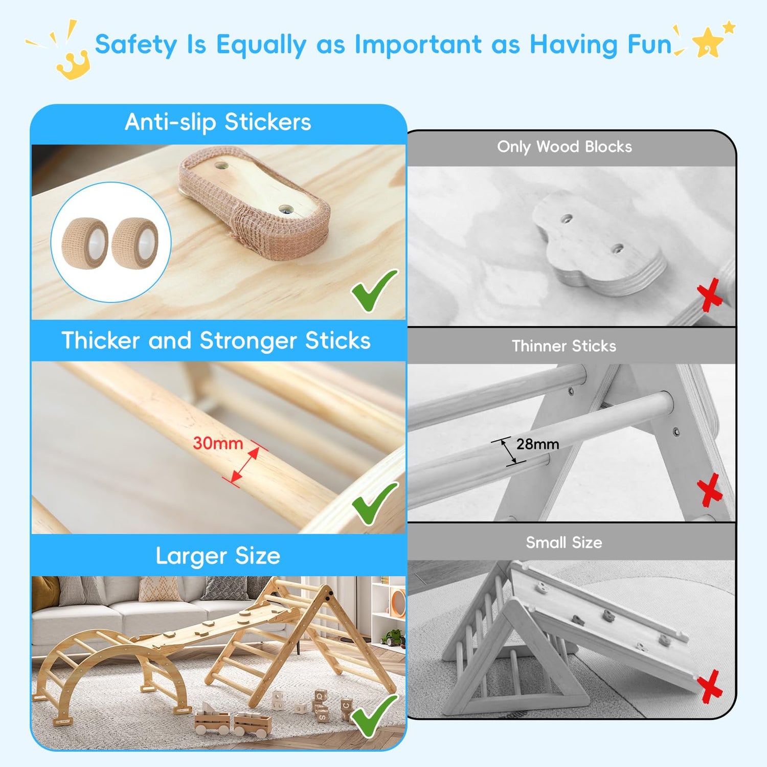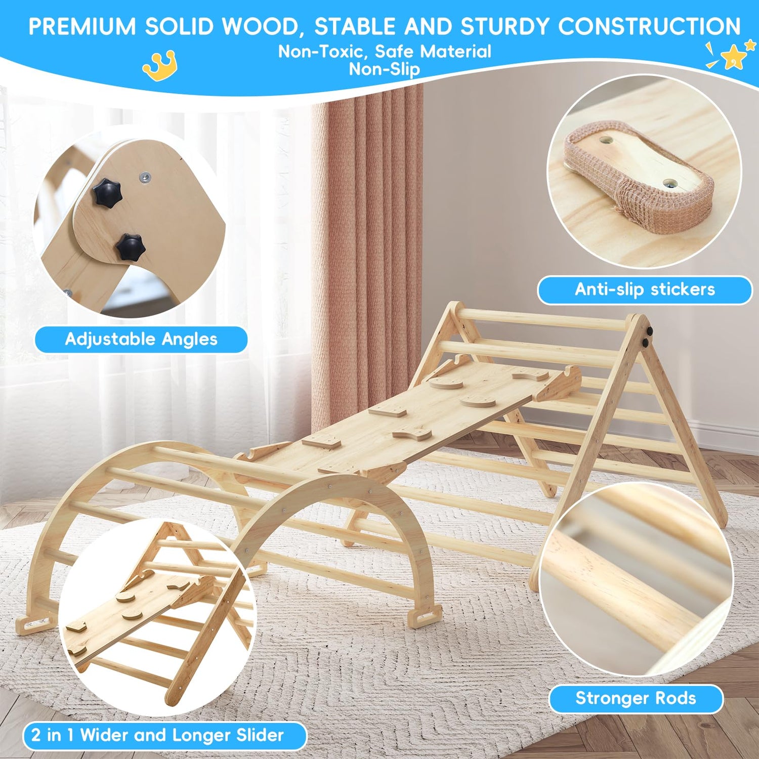 Details: Pikler Triangle Set for Baby Climbing Toy Indoor Playground for Kid | Montessori Learning Toy with Arch, Ramp, and Climbing Triangle | Indoor Outdoor Playground Climbing Toys for Toddlers