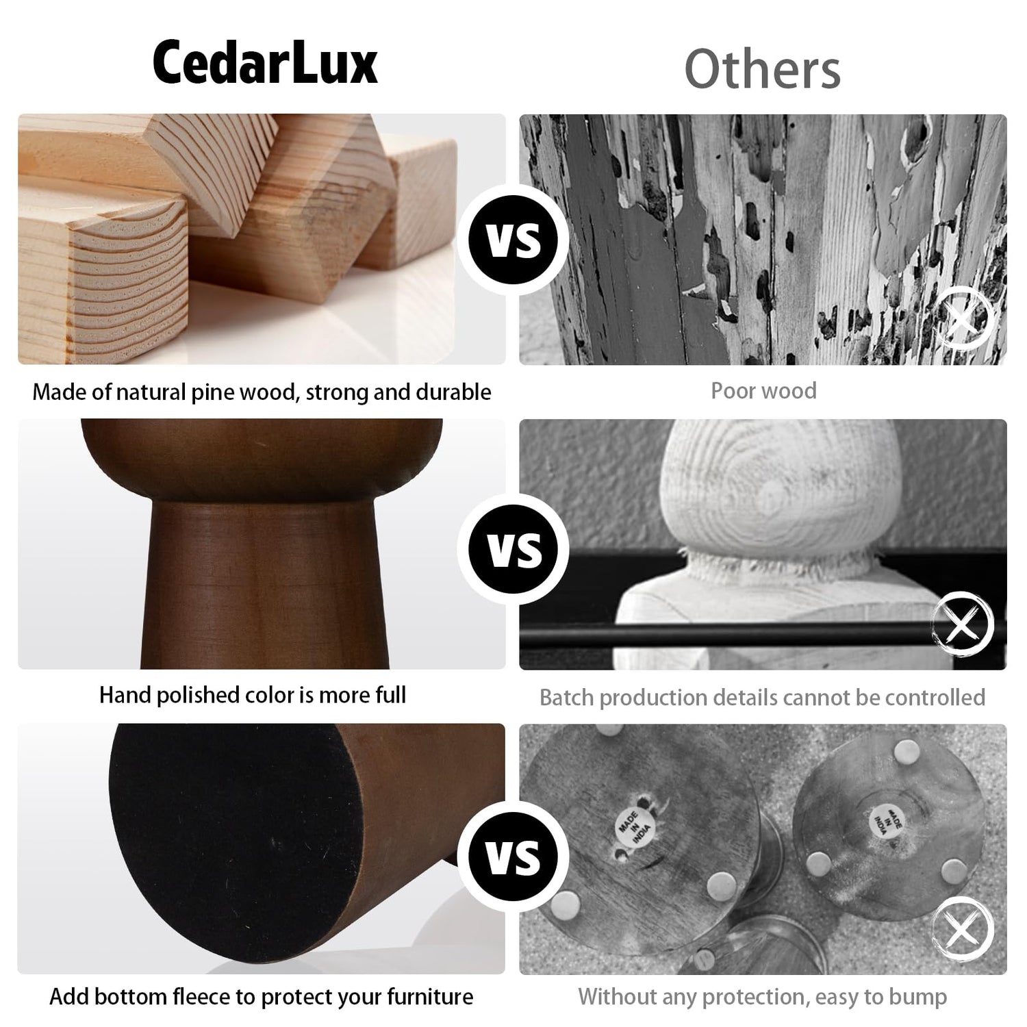 - [STURDY MATERIAL] Finely crafted to preserve the natural texture and smooth surface of the rustic candlestick. This modern candle holder is made of natural pine wood, topped with an iron wax cup, sturdy and durable. The base of the tall candlestick is equipped with felt to prevent it from sliding or scratching the furniture.