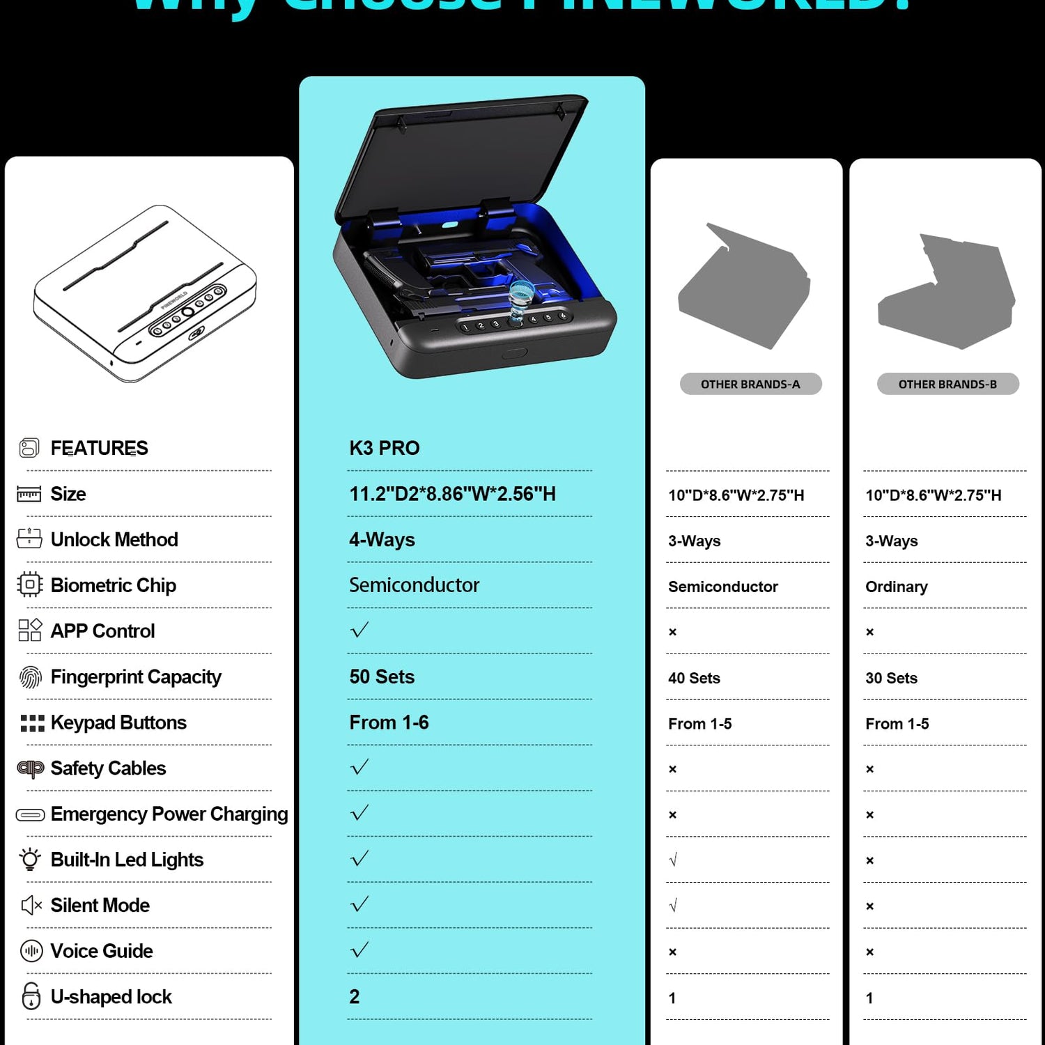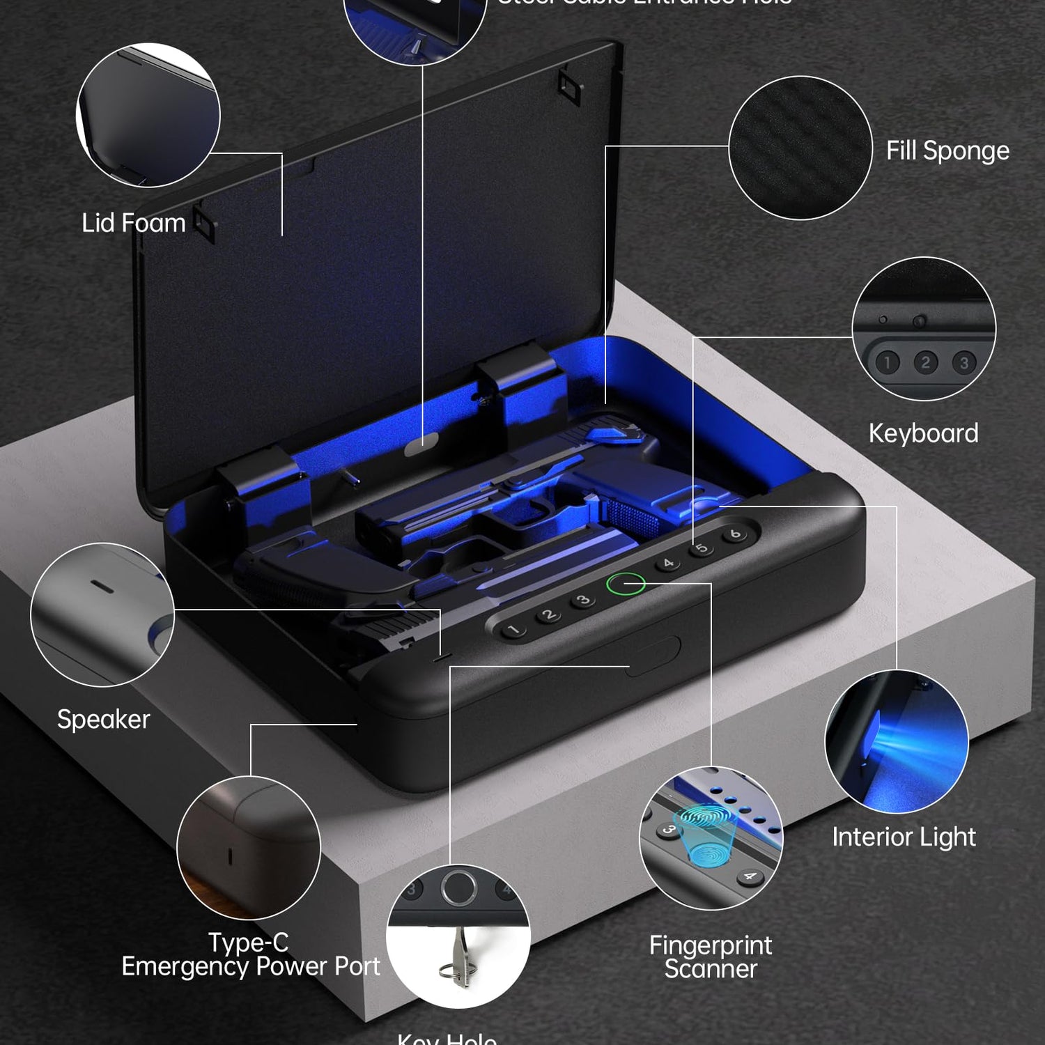 - Attentive Service: PINEWORLD biometric gun safe for pistols packed with thickened packaging box, and the interior is lined with shock-proof padding and cap foam to less scratches or damage. Contact us with any questions, we'll be glad to help you.