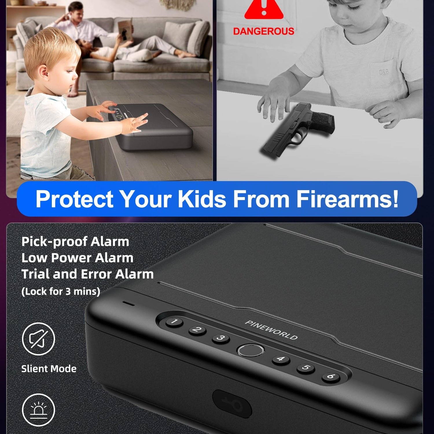 - Attentive Service: PINEWORLD biometric gun safe for pistols packed with thickened packaging box, and the interior is lined with shock-proof padding and cap foam to less scratches or damage. Contact us with any questions, we'll be glad to help you.