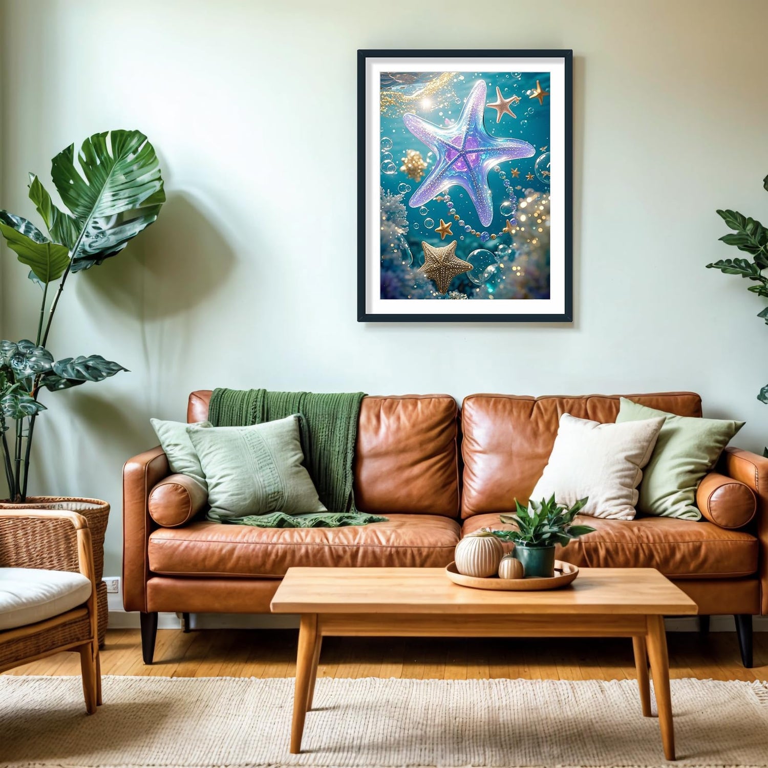 PINFFSHU 5D Diamond Painting Kits for Adults Starfish Diamond Art Kits DIY Full Round Drill Gem Art Crafts for Adults Sea Diamond Art Painting Underwater Pearls Home Wall Decor 12x16 Inch