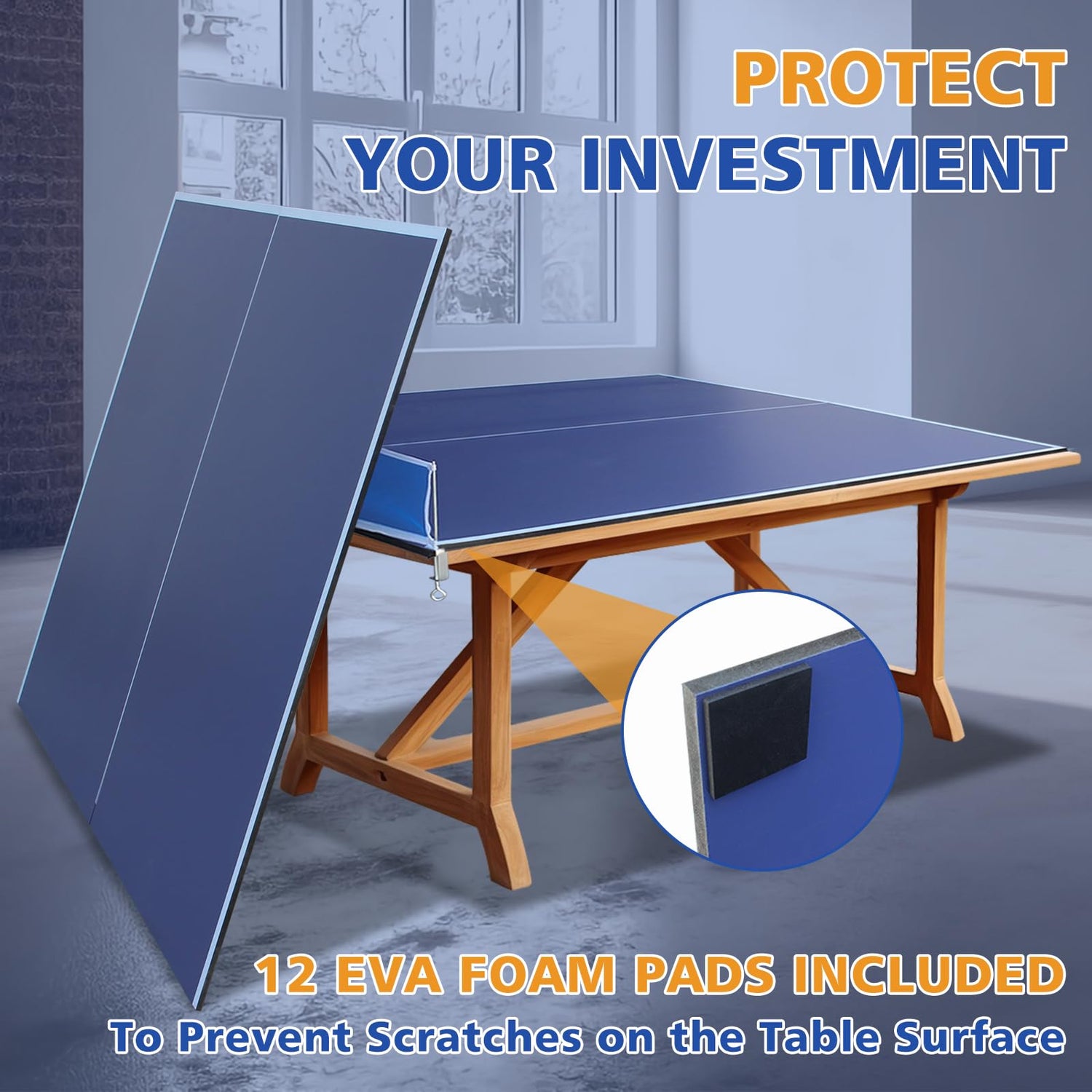 - LIGHTWEIGHT CONSTRUCTION: Crafted from lightweight yet sturdy materials, this ping pong table top is easy to set up and move around as needed. Comes with net, post set and 12 protective pads.