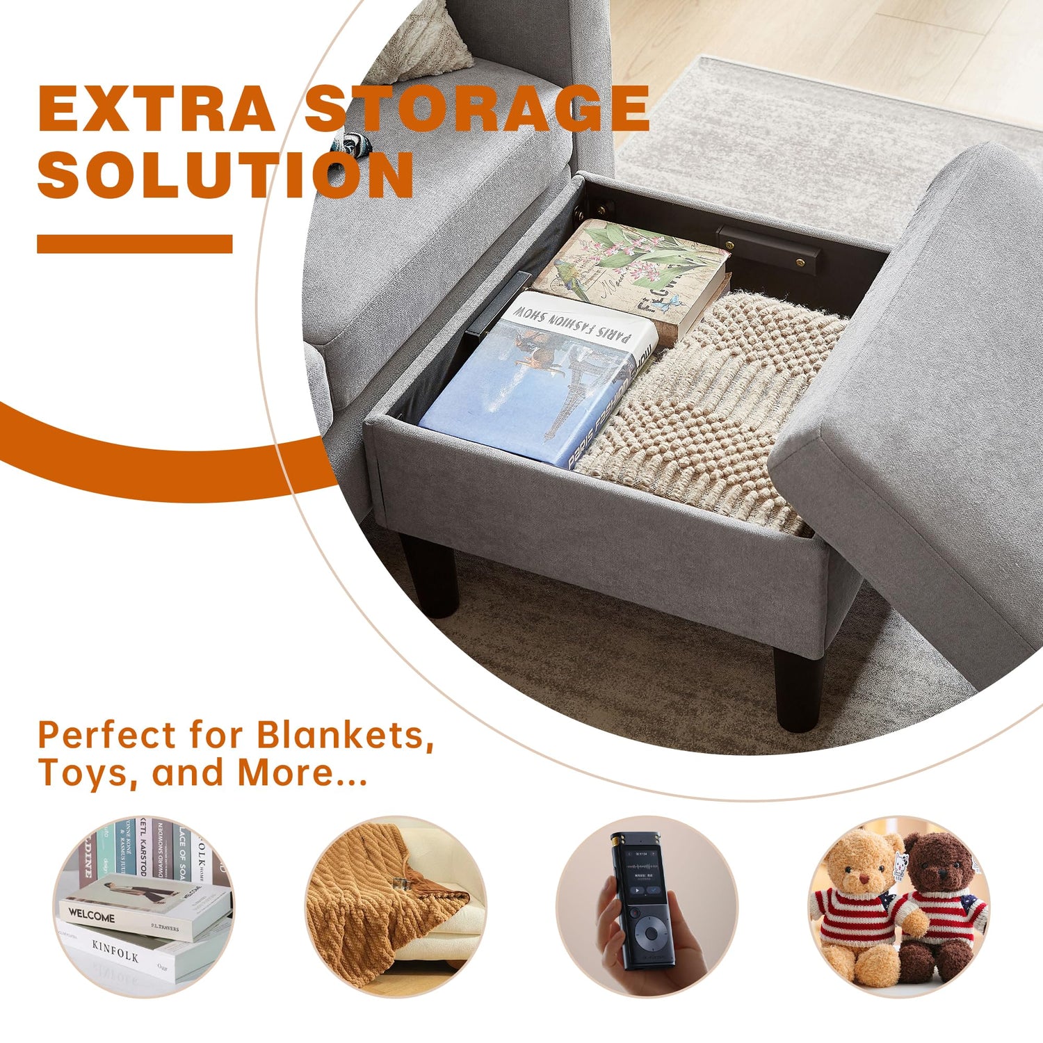 - SPACE-SAVING STORAGE COUCHES - Our sectional couch features extra storage space within the ottoman and featuring convenient side pockets. You can easily store your remotes, magazines, and even snacks within arm's reach. It's all right there, neatly organized and at your fingertips.