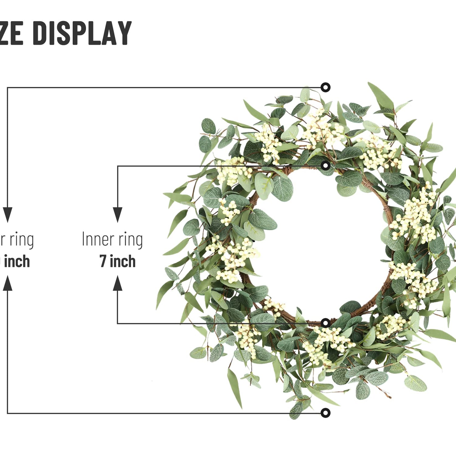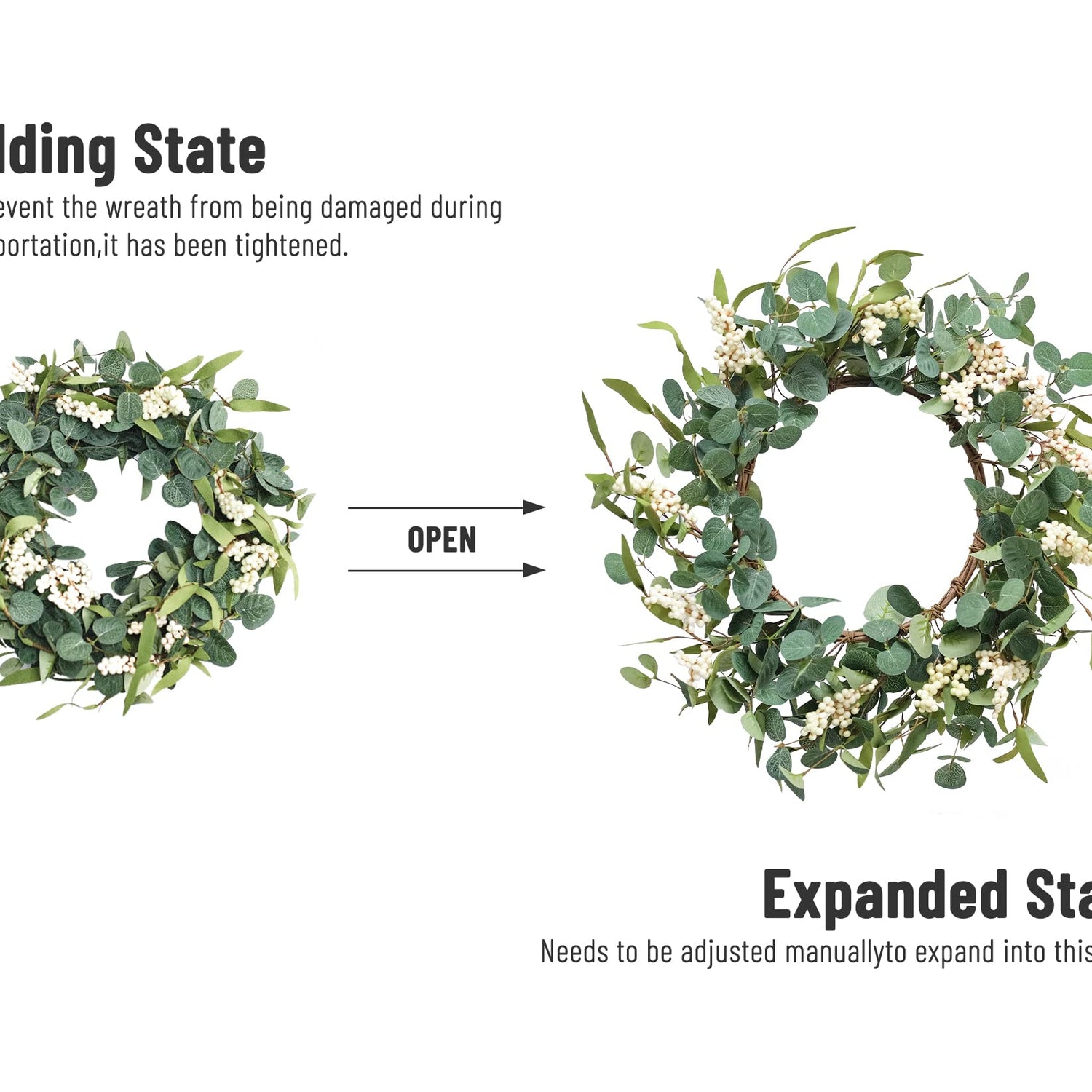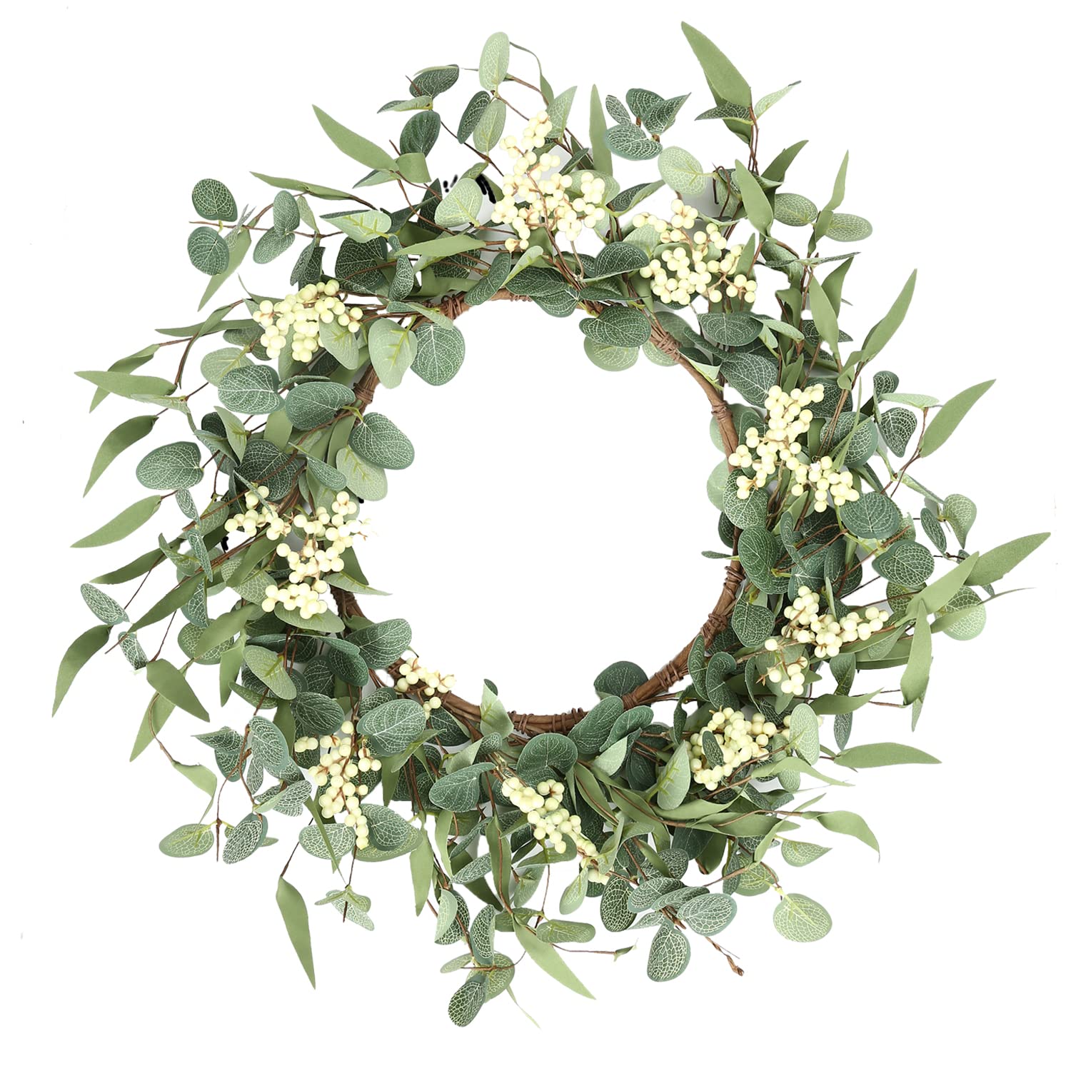 - 【Lifelike】: This eucalyptus wreath is made of 3 types of leaves with different colors, and it is additionally dotted with white berries, which makes it look more vibrant, Lifelike, and it doesn't take a lot of energy to manage. It keeps blooming and never fade. But to prevent discoloration, please try to avoid being in a humid environment for a long time.
