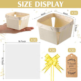 Pinkunn 30 Set Wooden Gift Baskets 4 x 4 x 2.5 Wood Basket DIY Square Wood Gift Boxes with Plastic Paper Thank You Cards and Pull Bows for Christmas