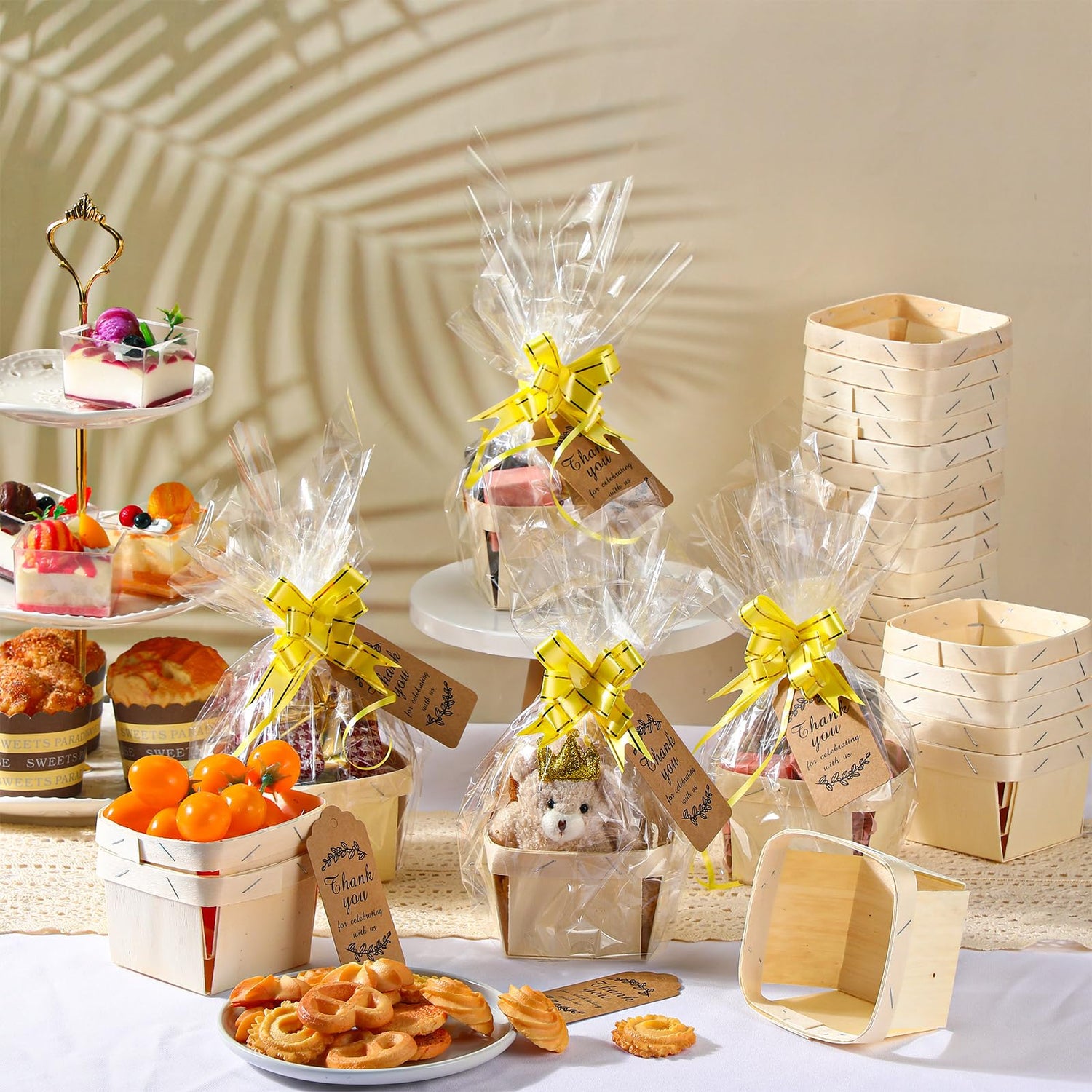 - Reliable and Sturdy: gift basket supplies are made from reliable materials which ensures durable and trustworthy usage; The small basket for gifts has been constructed from wood, waterproof and sturdy, while gift basket bags are made of plastic, providing a transparent way to showcase your gifts