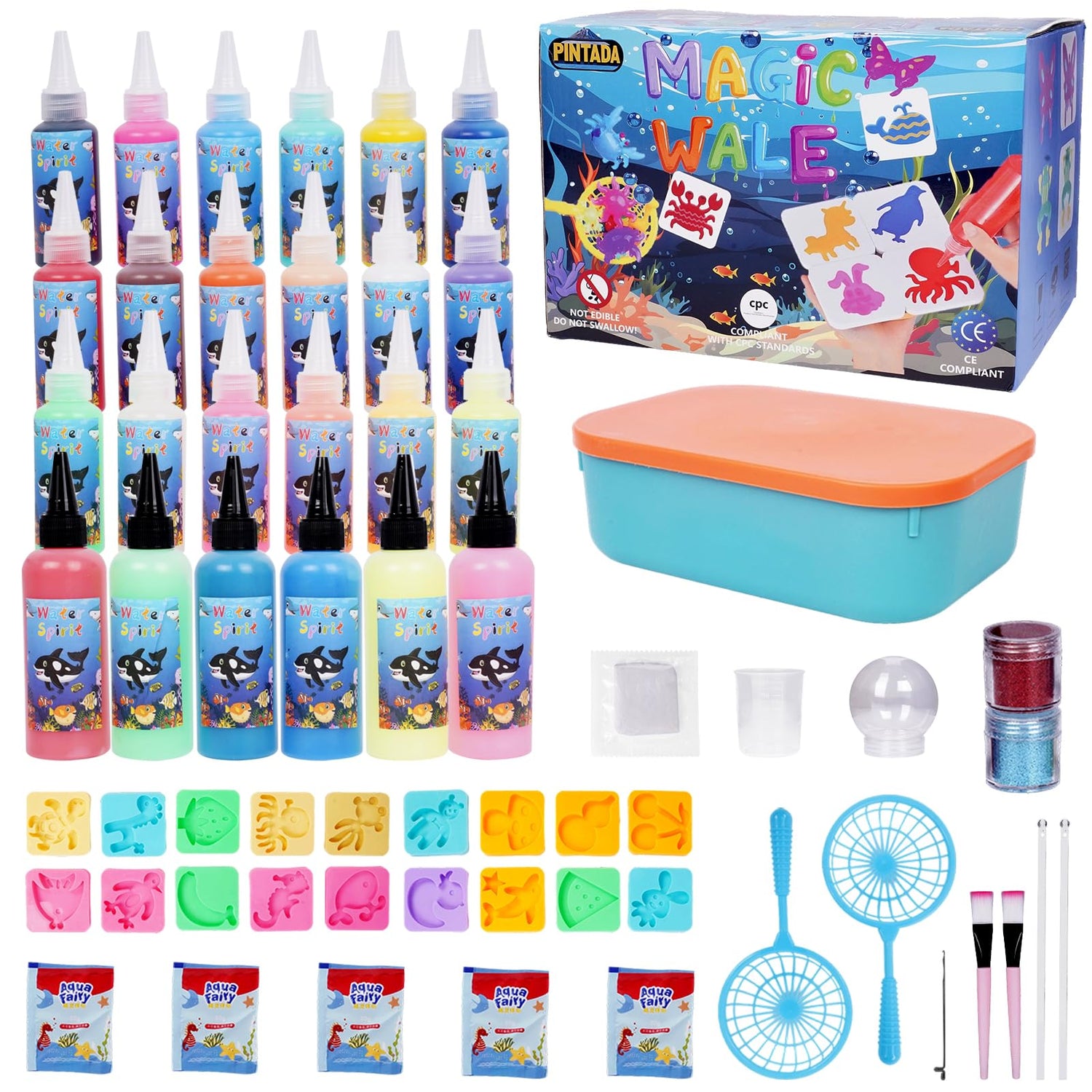 Pintada Magic Water Gel Kit for Kids – Create Squishy Water Pets with 24 Colorful Gels & 18 Molds! DIY Science Toys, Sensory Play, Glow in The Dark Crafts for Girls Boys Ages 6-12