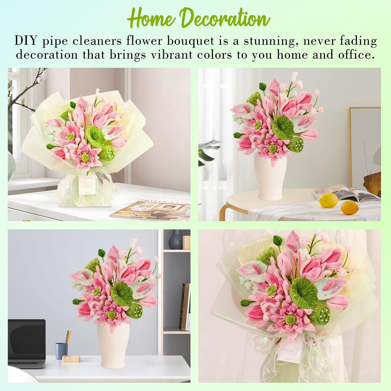 - CREATIVE DIY & VERSATILE USE - DIY pipe cleaner flower bouquet kit are great for party projects and classroom activities, encouraging creativity and imagination. Once completed, they make charming vase decorations for homes and classrooms. Ideal for schools, homes, craft workshops, and more.
