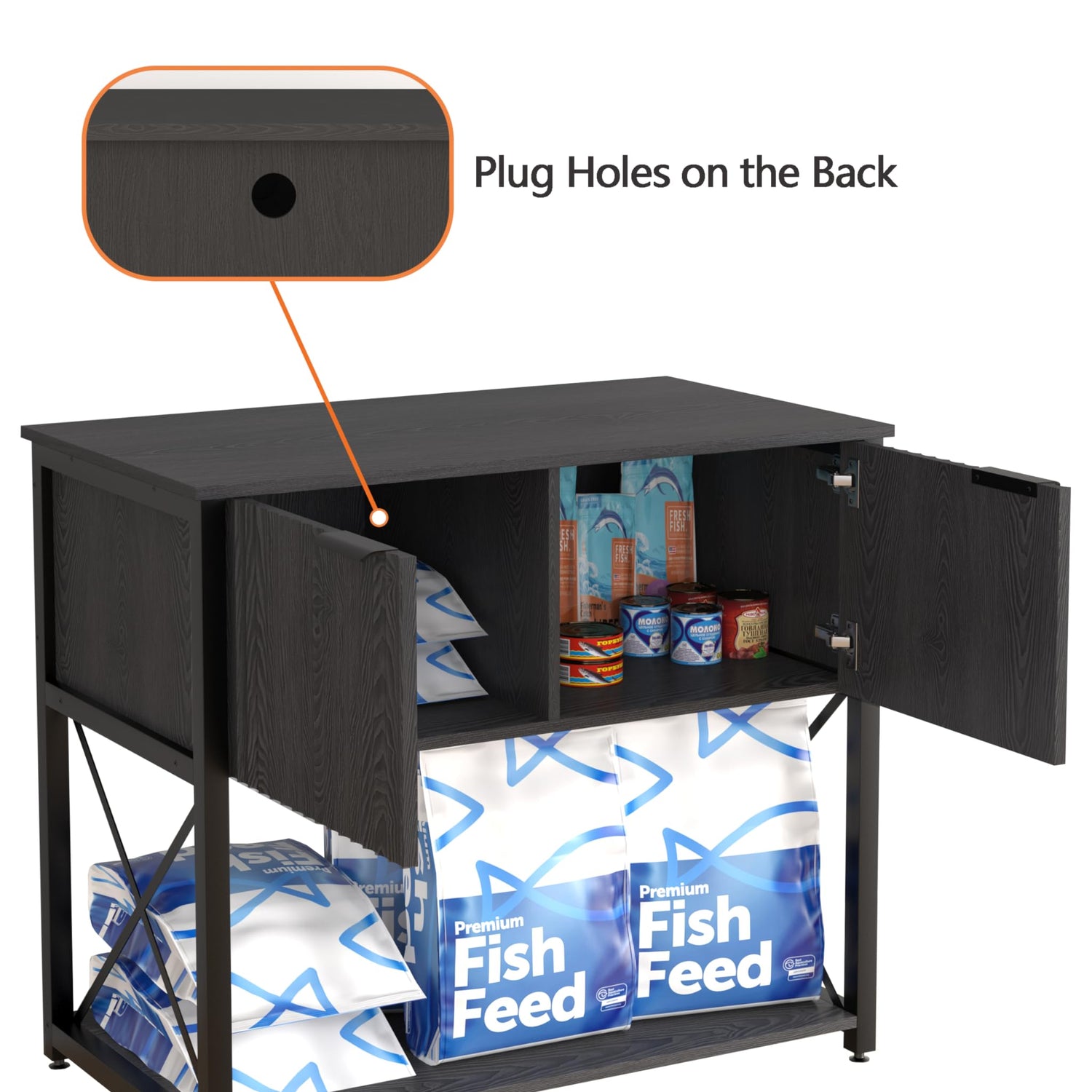 - 【CONVENIENT STORAGE FUNCTION】With a storage cabinet in the center, it is convenient to store fish tank supplies, and the door panel is silent design, which doesn't disturb the fish and keep the fish tank area tidy, meet your needs for home practicality.