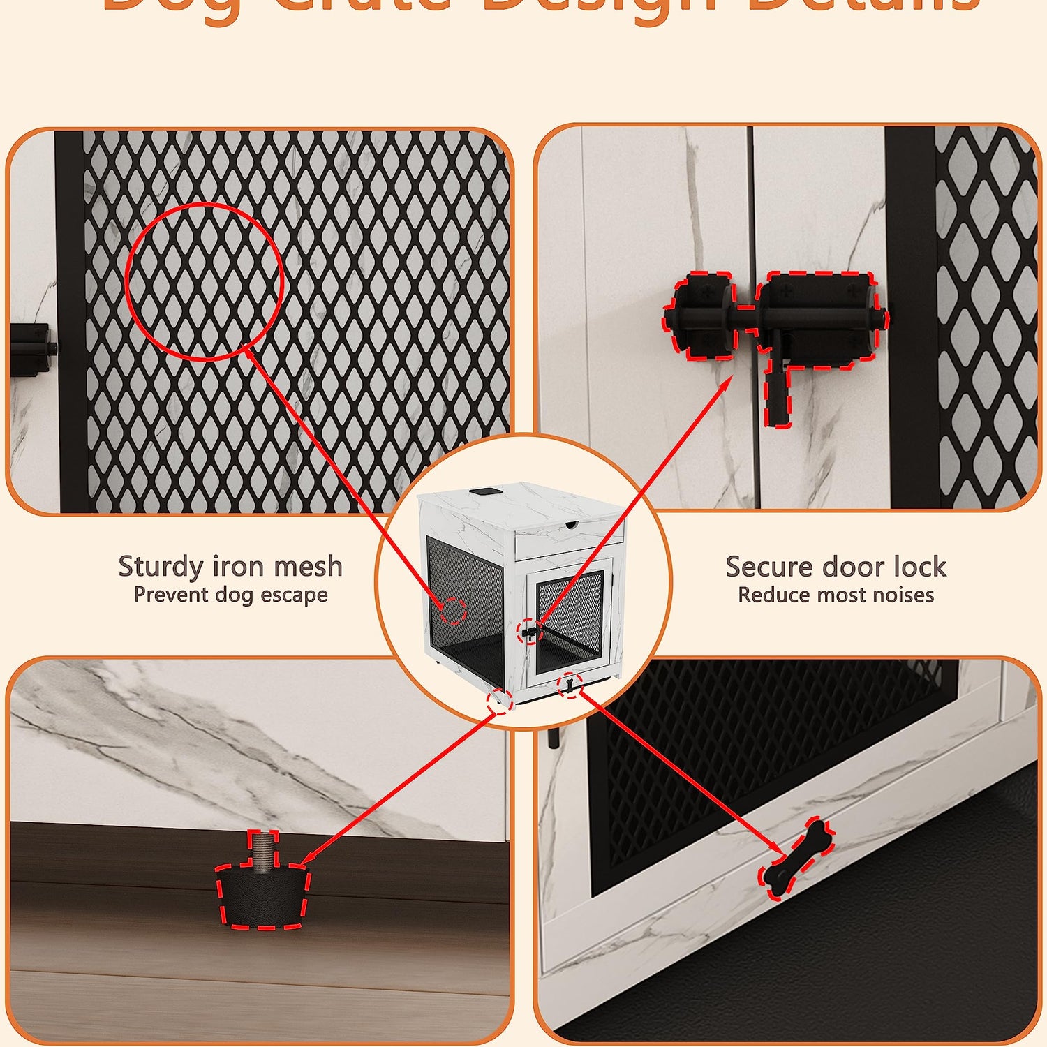 - 【Chew-Proof Mesh】: The excellent diamond iron mesh prevents dogs from chewing,at the same time,prevent the dog's paw or head from being stuck by the iron net. . The quality is strong enough to survive the use of anxious puppies,and strong locks don't make a lot of noise.