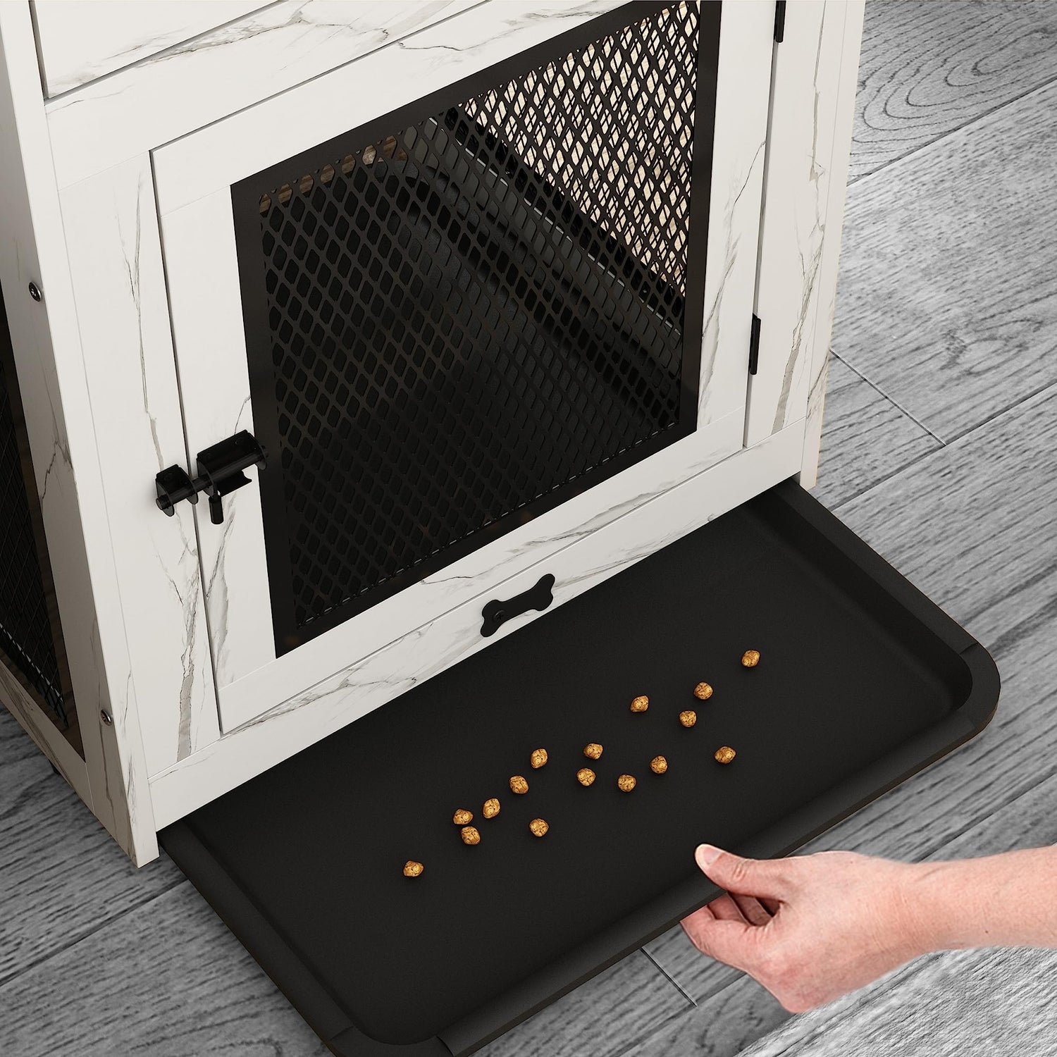 - 【Easy-to-Clean Tray】:The interior of the dog crate needs regular disinfection and cleaning of hairs and dirt. Durable, odorproof features make it easy to pull out and clean in the event of an accident,which is not possible with a wooden board.