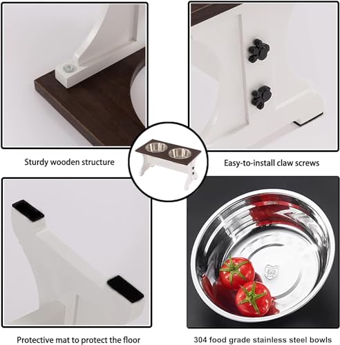 - Easy to install: No additional tools are required, it only takes three minutes to assemble! Cute and claw screws make the dog bowl rack more refined, perfect for your pet lover family or friends as a gift!