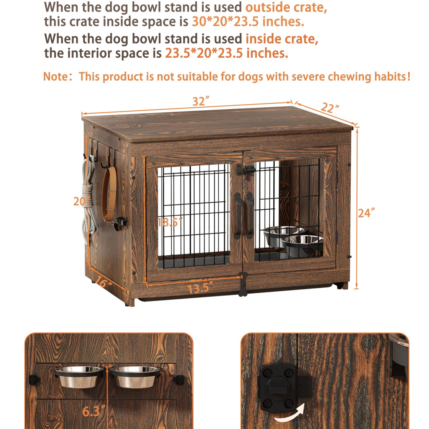 - 【Product Material】: Detachable curved corner design, top cover can withstand 200 pounds of static weight. Made of high-quality high-density fiberboard, it's sturdier than particle board. Thicker steel wire is used for greater strength and safety, capable of preventing dogs trying to escape.