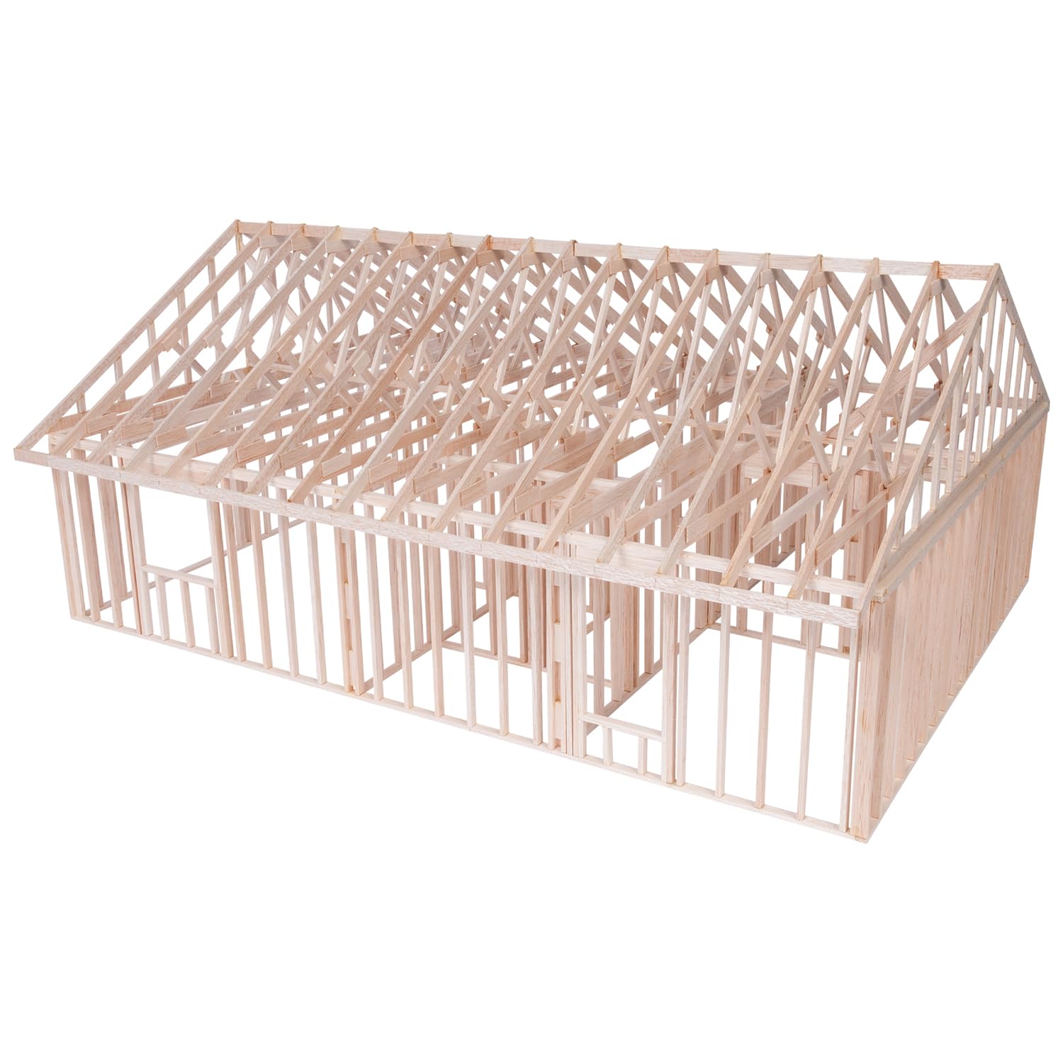 Pitsco Education True Scale House Framing Kit, Balsa Wood Model Home with Standard Two-Bedroom Layout and Truss or Hipped Roof, Dimensioned Lumber, DIY Model House Kit for Ages 14 and up