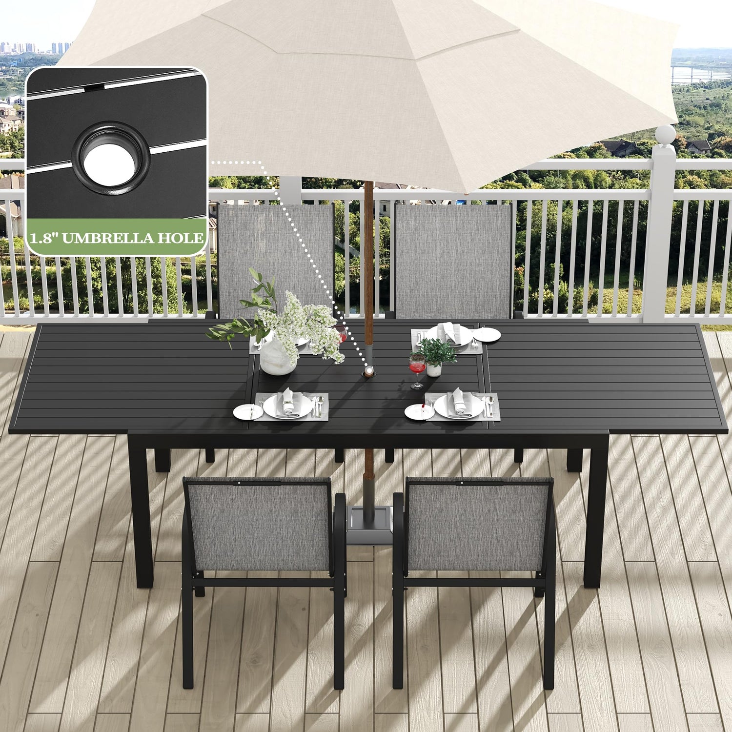- STURDY ALUMINUM FRAME - This expandable patio table is made of solid aluminum with special coating for rust and weather resistance, helping ensure a sturdy table that lasts for years to come. Bring you years of enjoyment on a patio, backyard, porch and more outdoor area. The smooth and waterproof surface is easy to clean with a damp cloth and water.