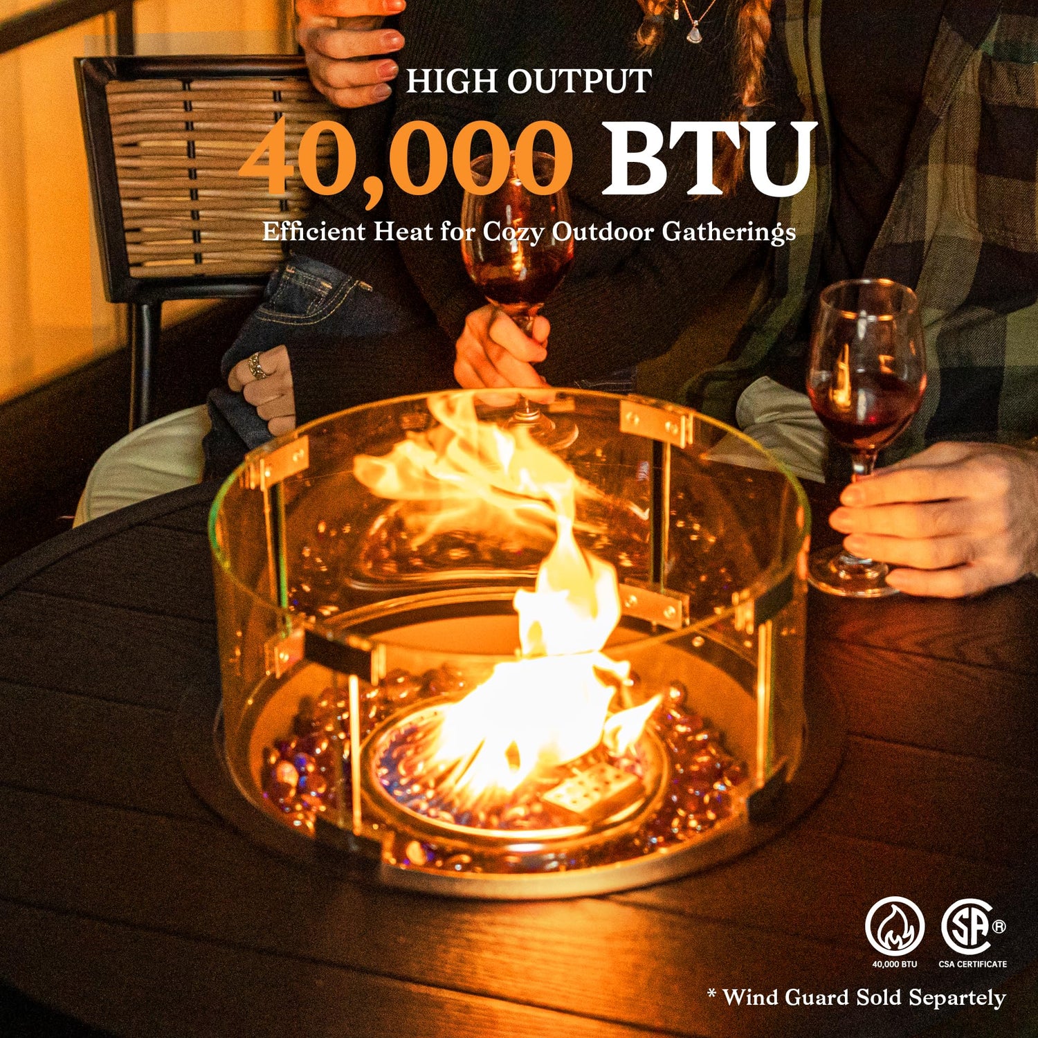 - Functional and Safe Firepit Table - Boasting an impressive 40,000 BTU heat output and efficient ignition, the patio propane fire pit table can bring warmth for your family during the cold winter. CSA certified firepit table also ensures a stable and safe heat output while daning flames brings a visual feast.