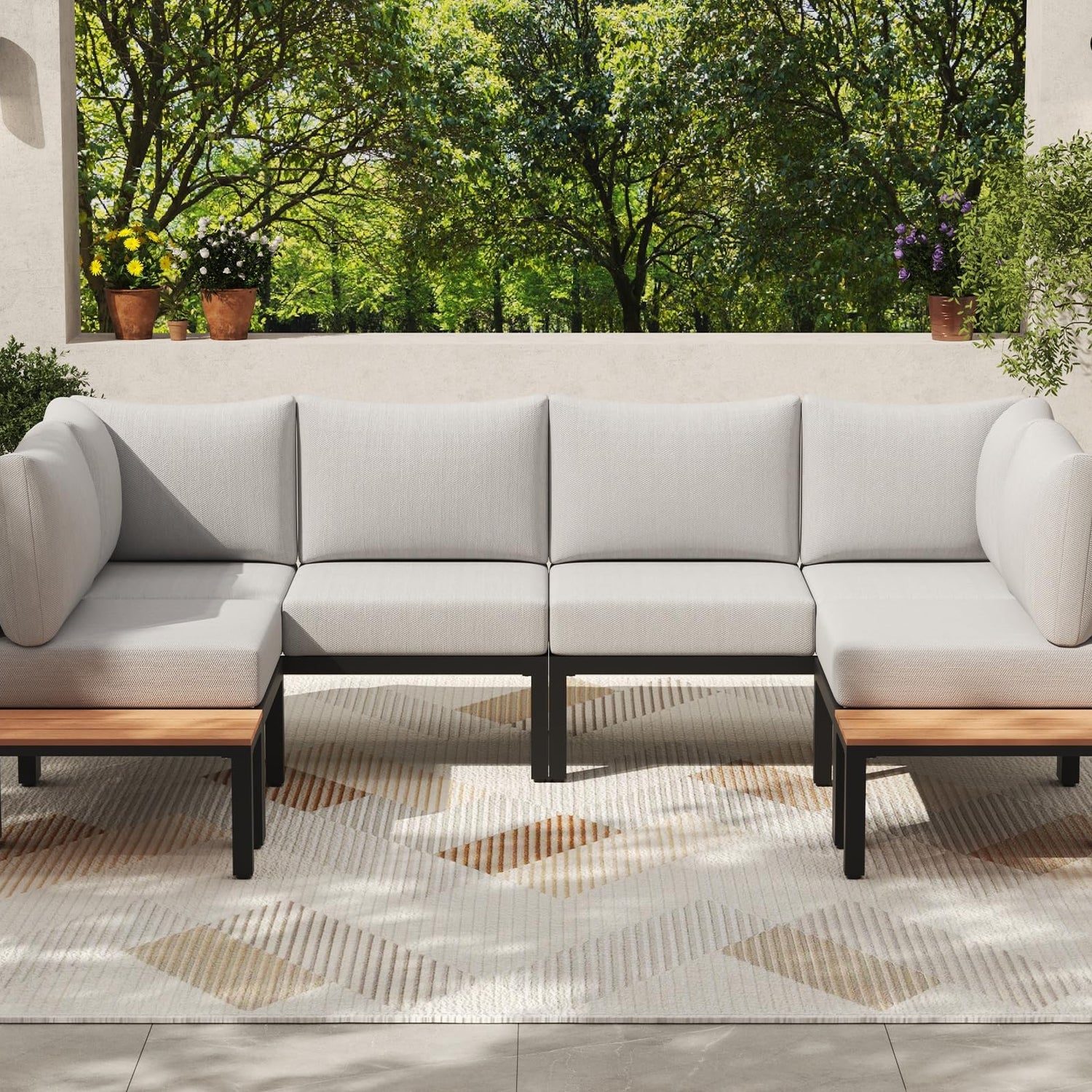 - MULTI COMBINATION OPTIONS - Specially designed detachable armrests of the patio sectional sofa for a free combination. You can add or remove the armrests according to your needs such as a outdoor conversation set or poolside lounge daybed. Moreover, 2 side tables can be utilized independently or together, enhancing the overall functionality and adaptability of your outdoor space.