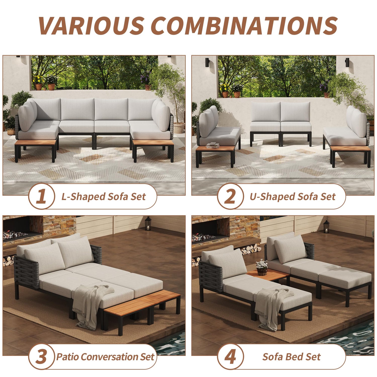 - VERSATILE COMBINATION OPTIONS - Specially designed detachable armrests of the patio sectional sofa for a free combination. You can add or remove the armrests according to your needs such as a outdoor conversation set or poolside lounge daybed. Moreover, 2 side tables can be utilized independently or together, enhancing the overall functionality and adaptability of your outdoor space.