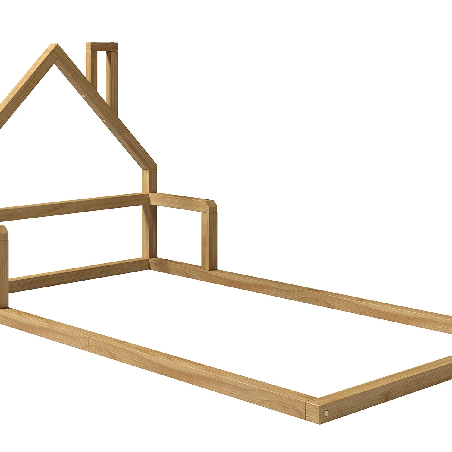 P'Kolino Casita House Twin Floor Bed - Montessori Inspired - Solid FSC Certified Solid Wood Floor Bed - Natural Wood