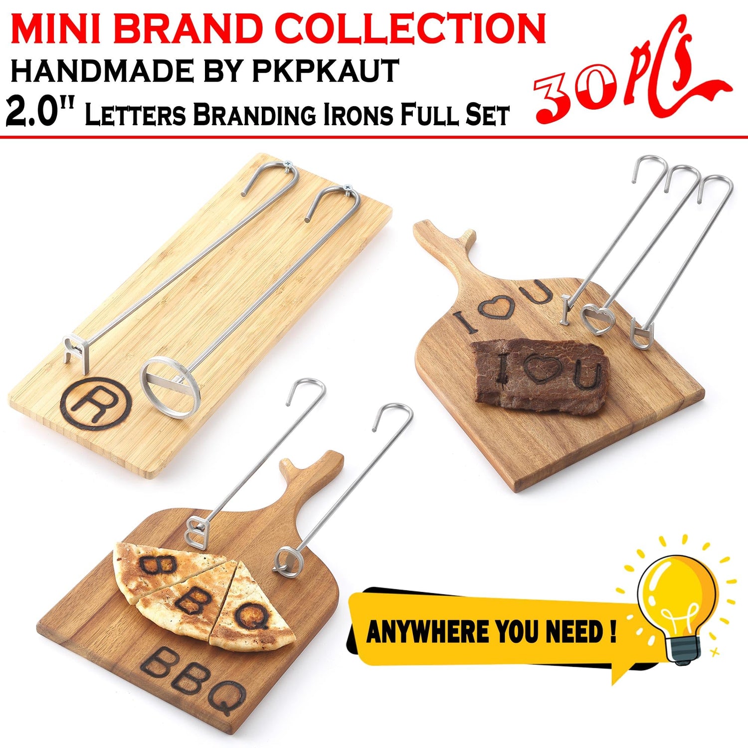 PKPKAUT 30Pcs 2" Letters Custom Wood Branding Iron Personalized for Wood Working, Leather Hats, Steak, BBQ Brander & Bread Logo, Personalized Steak Branding Iron for Food (12" Forged Handle)